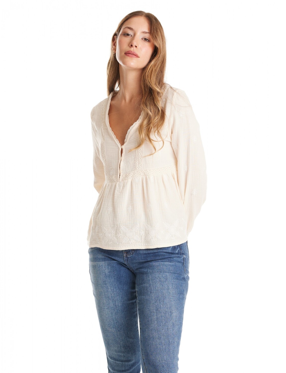 Blusa Algodon Puntilla - Beige