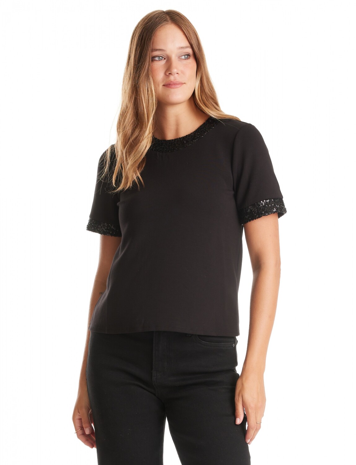 Blusa Aplique Lentejuelas - Negro