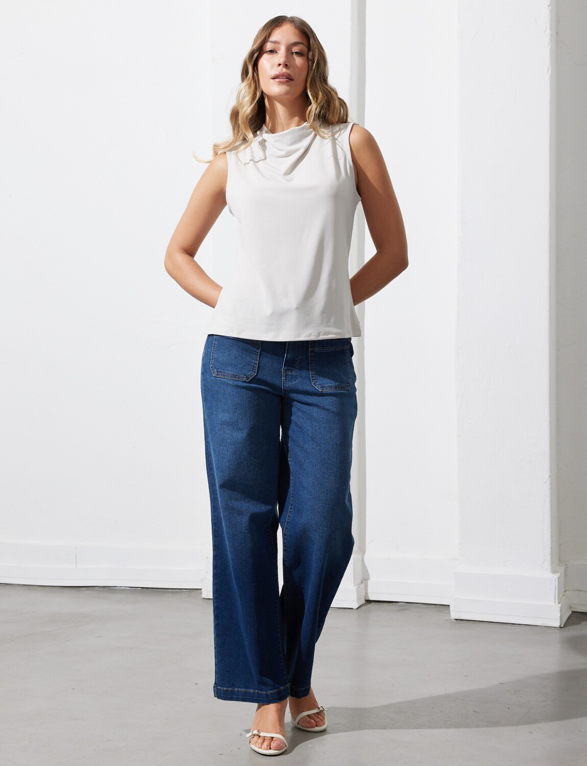 Blusa Cuello Volcado - Beige Claro