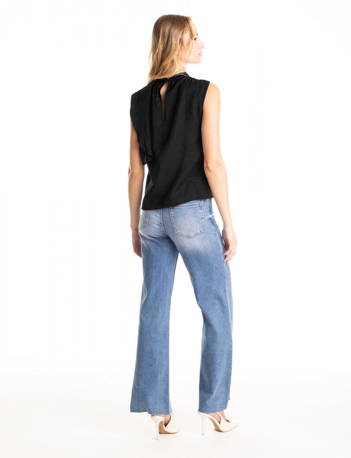 Blusa Drapeada & Cuello Bordado - Negro