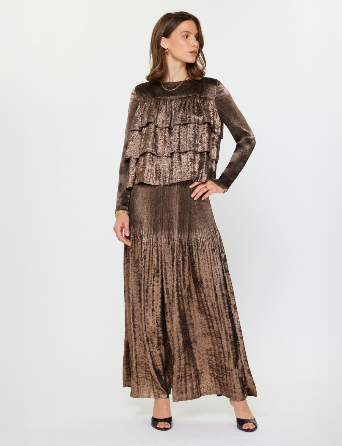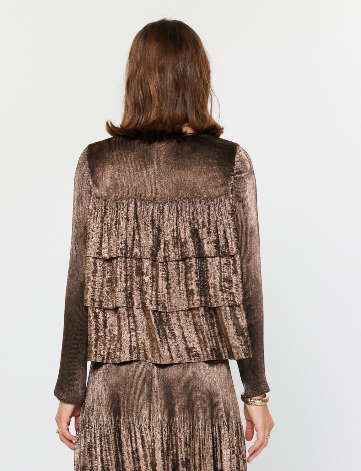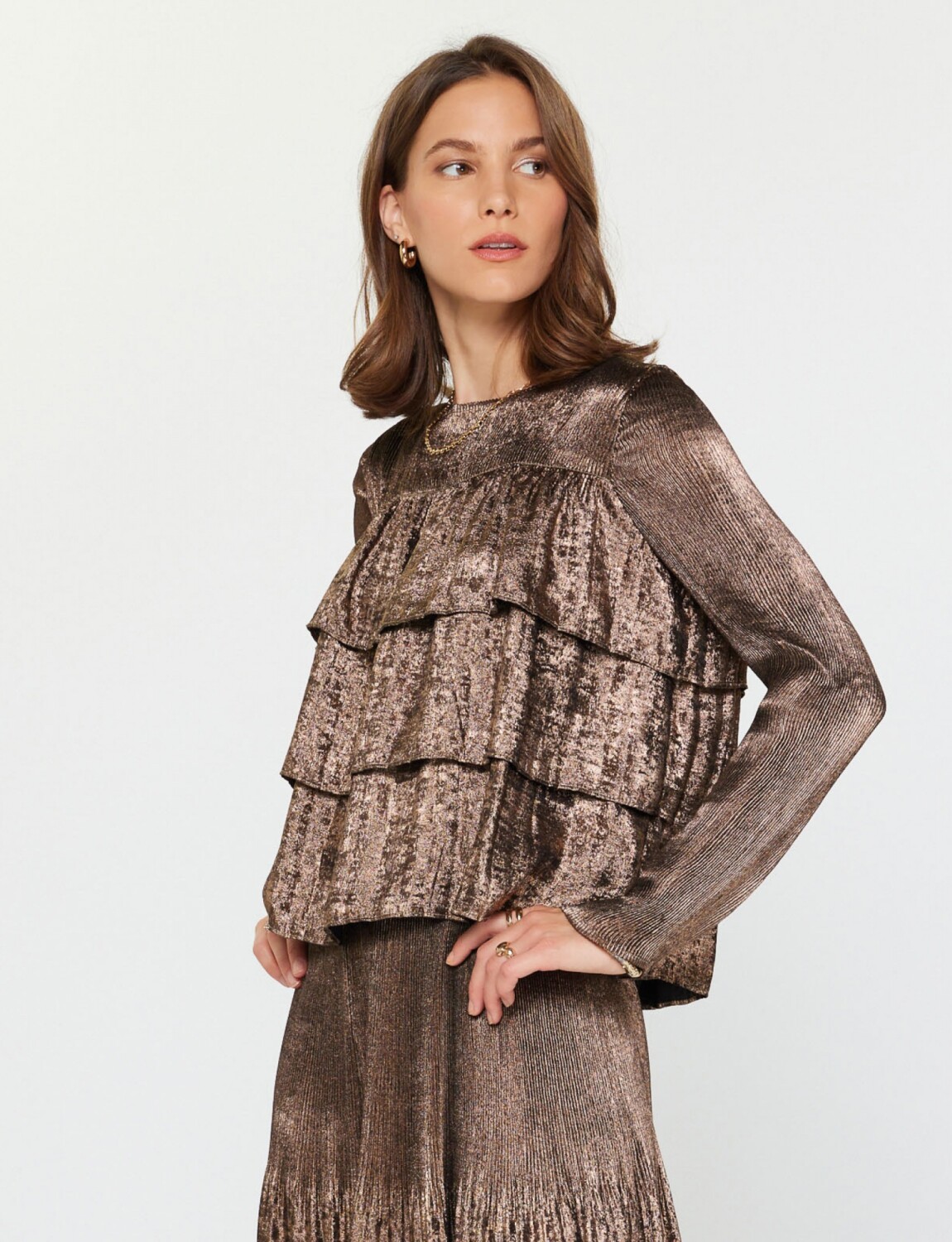 Blusa Laminada Volados - Dorado