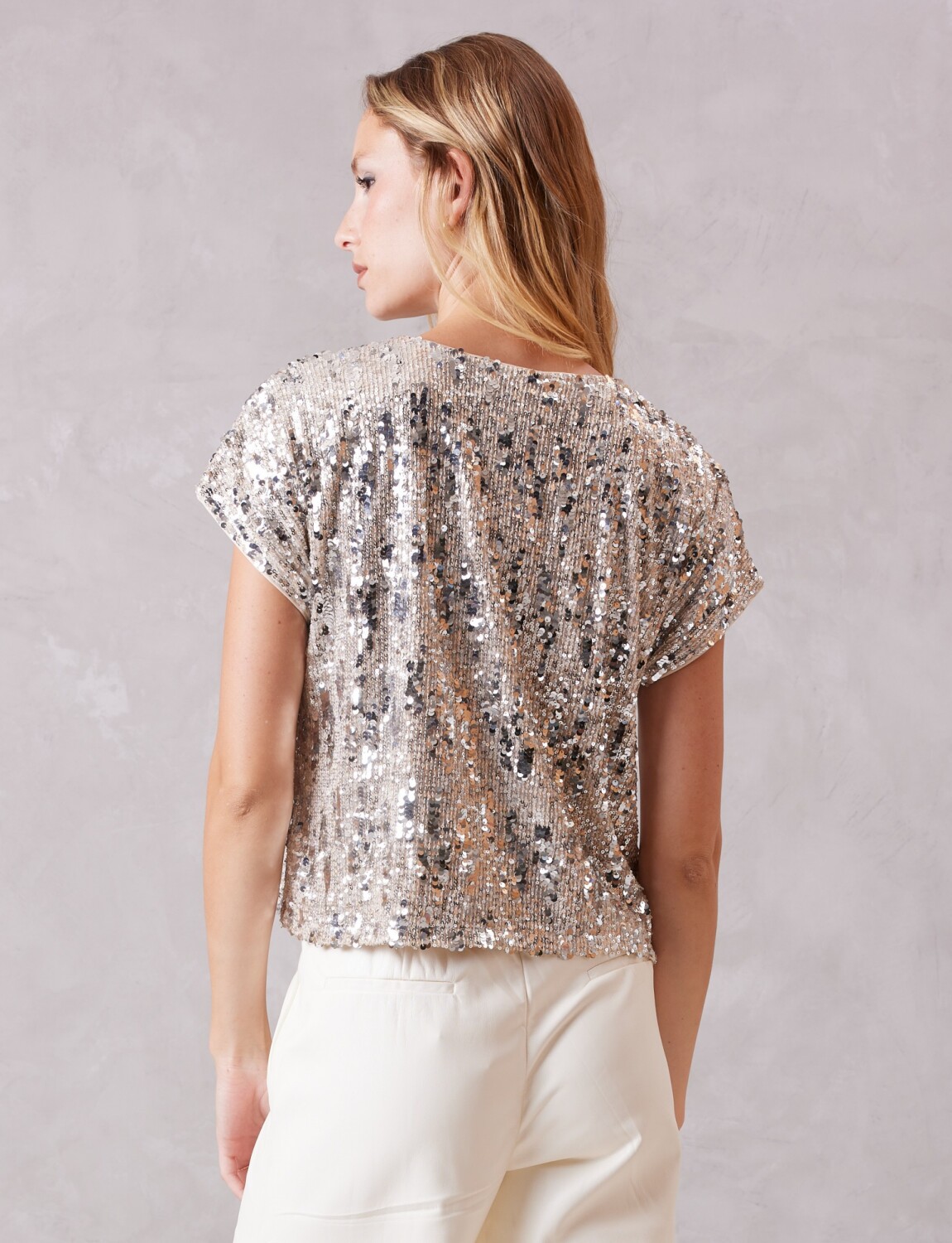 Blusa en lentejuelas, marca Cable & Gauge.