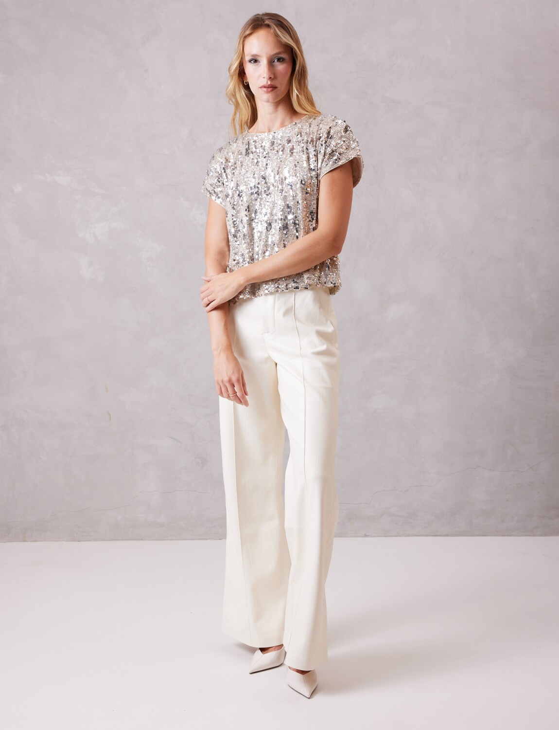Blusa en lentejuelas, marca Cable & Gauge.