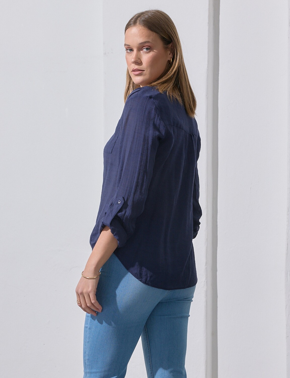 Largo de manga regulable con presilla y botón.