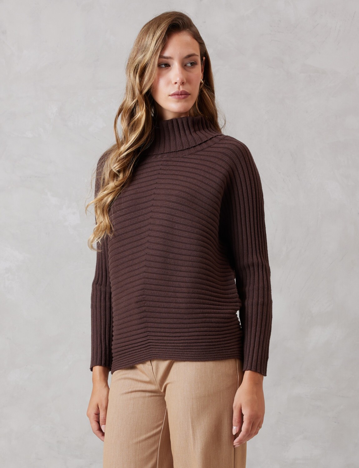 Buzo Acanalado Cuello Alto - Marron