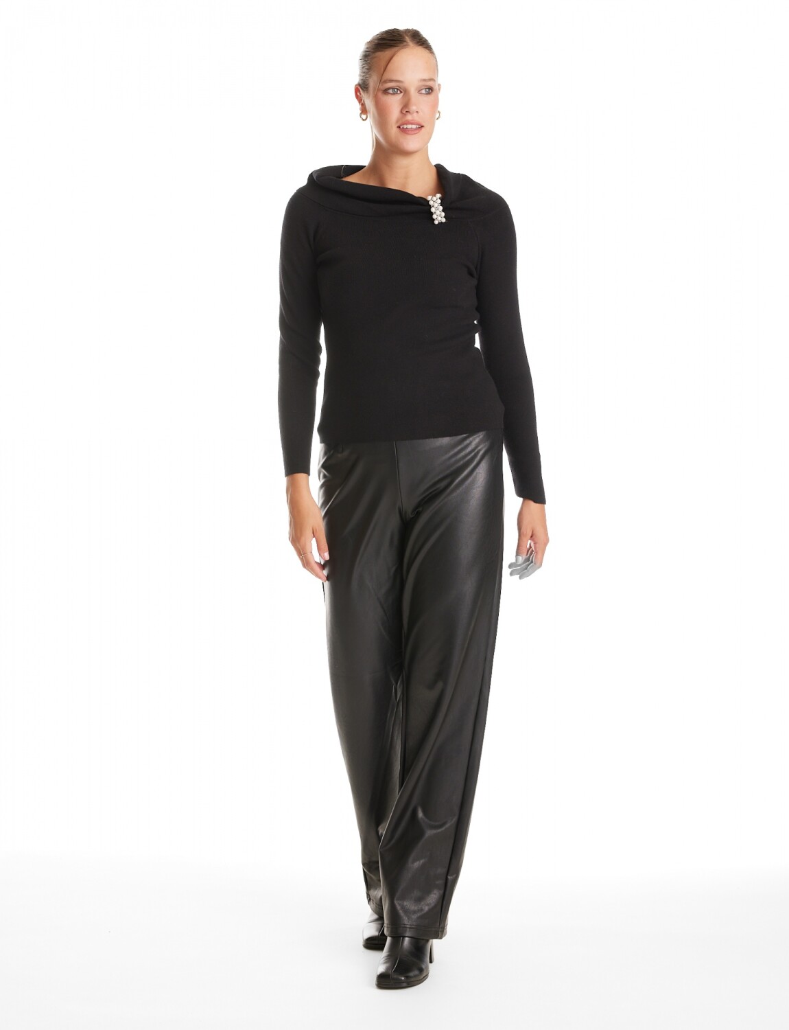 Cuello volcado con aplique en perlas.