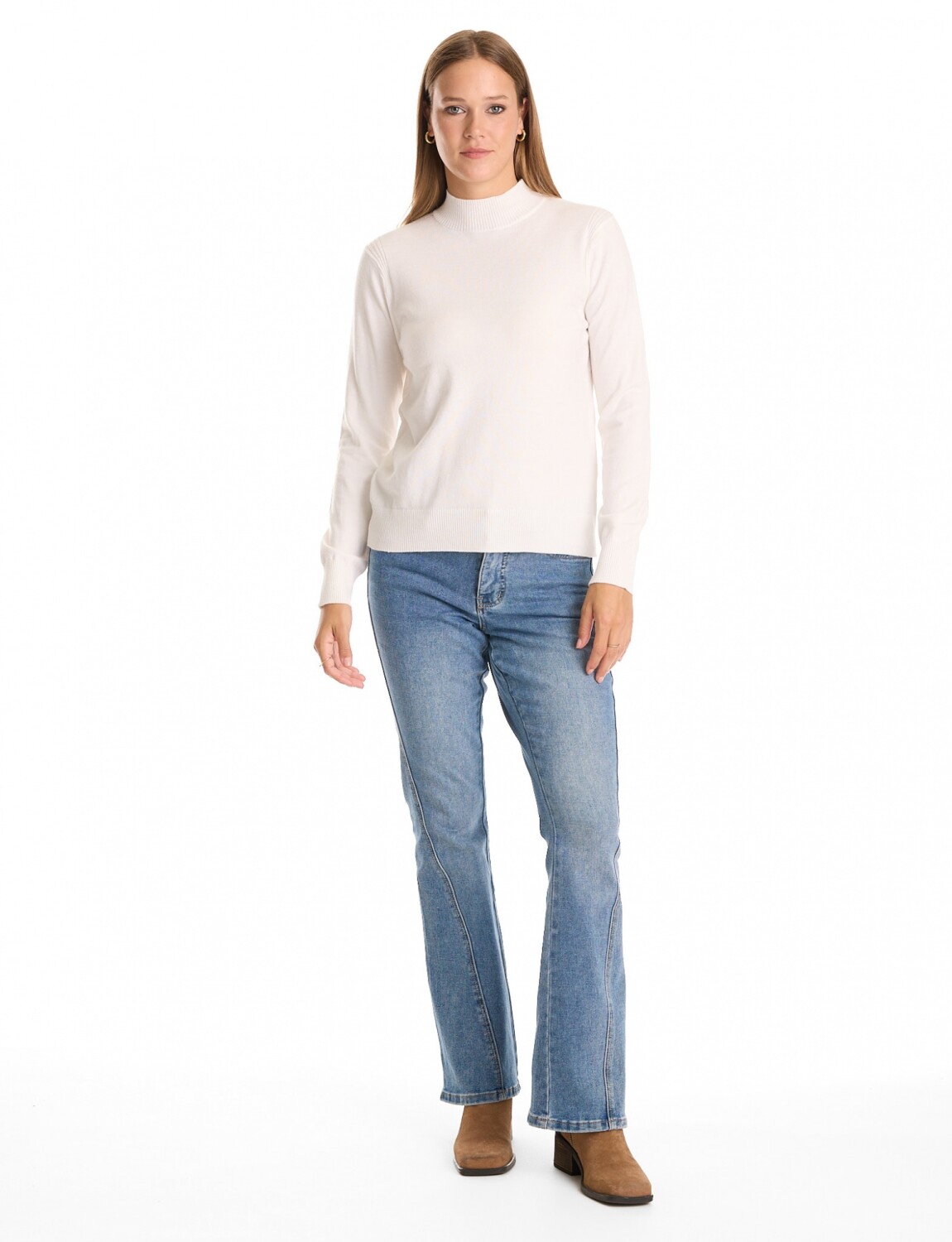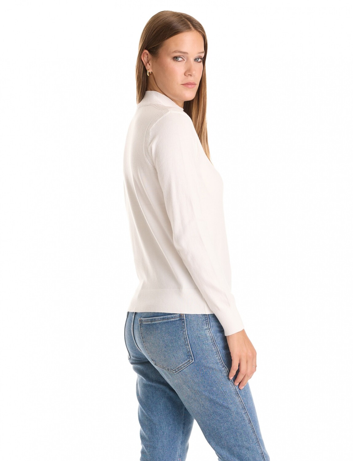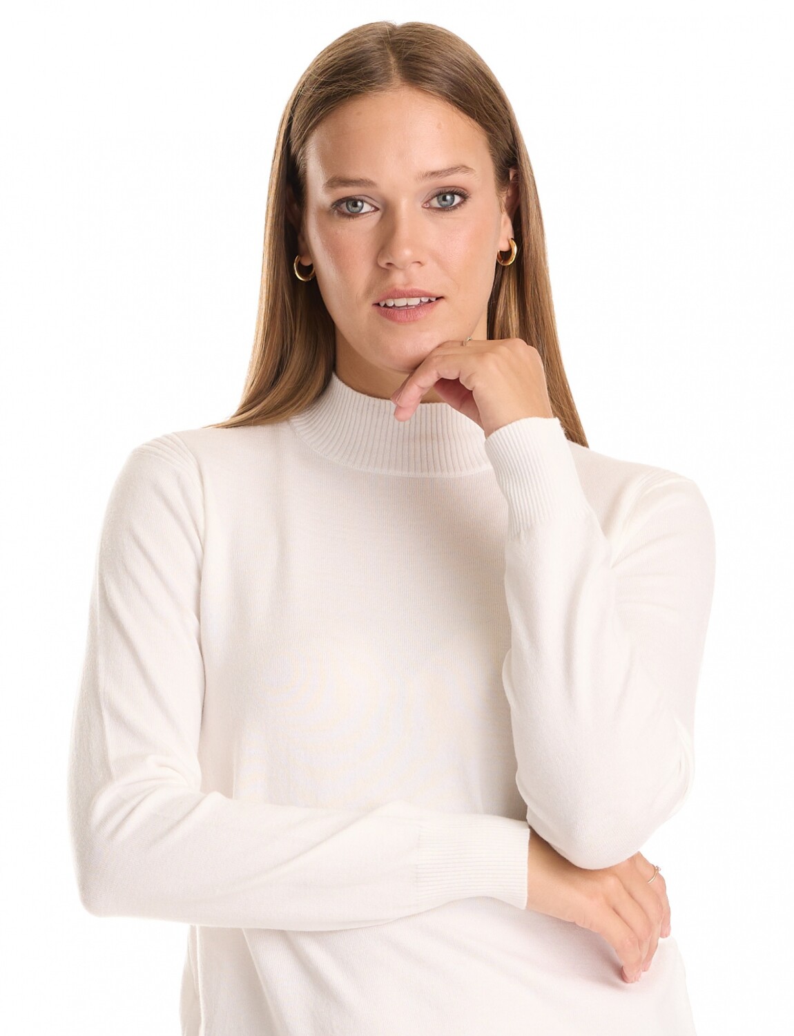 Manga larga y cuello alto.