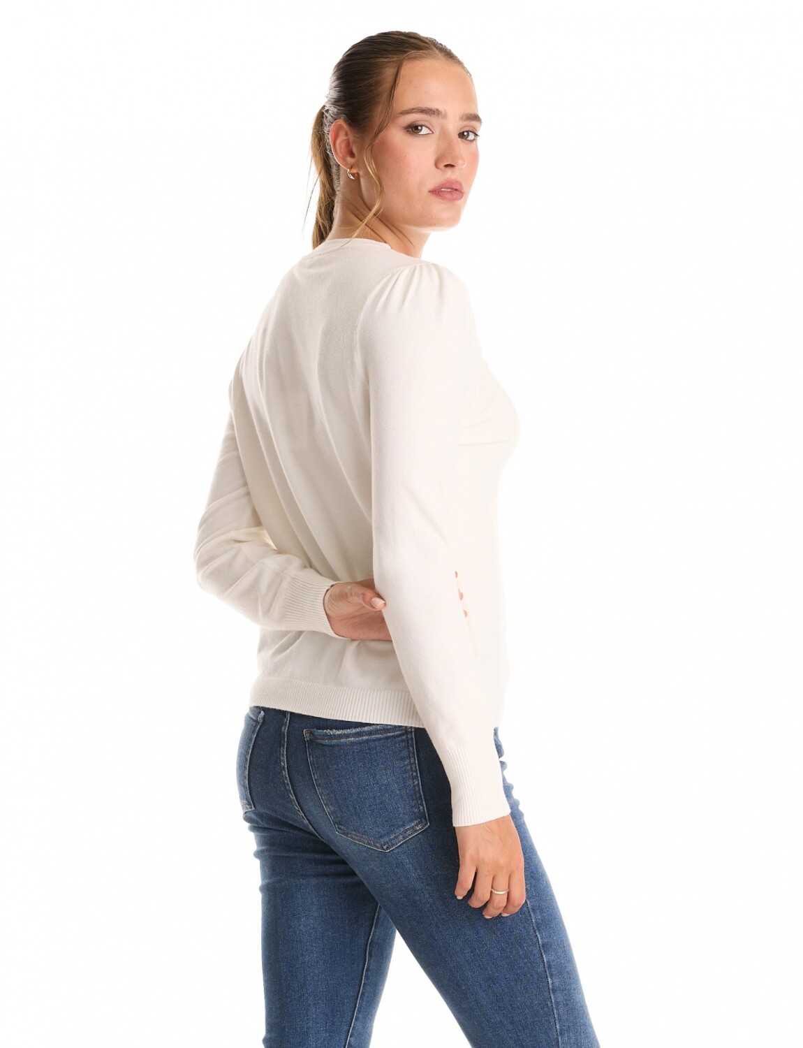 Manga larga con leve frunce en hombros.