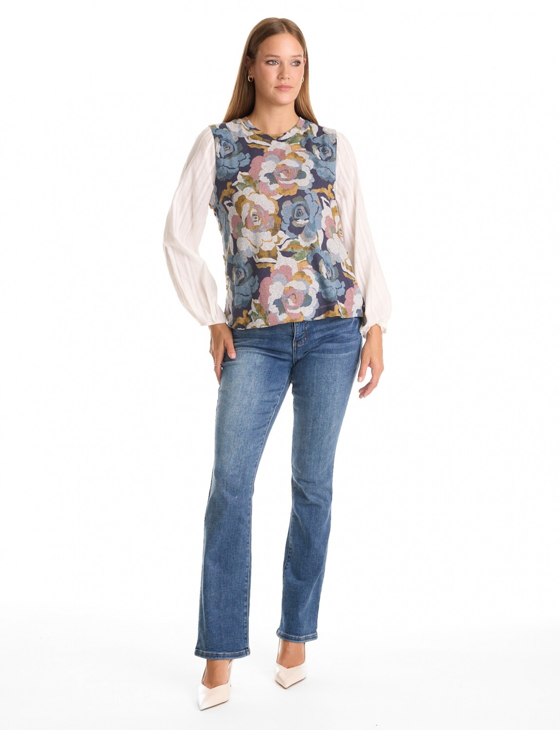 Mangas largas de gasa liviana, las cuales aportan volumen etéreo y finalizan en puños elásticos que crean un efecto fruncido.