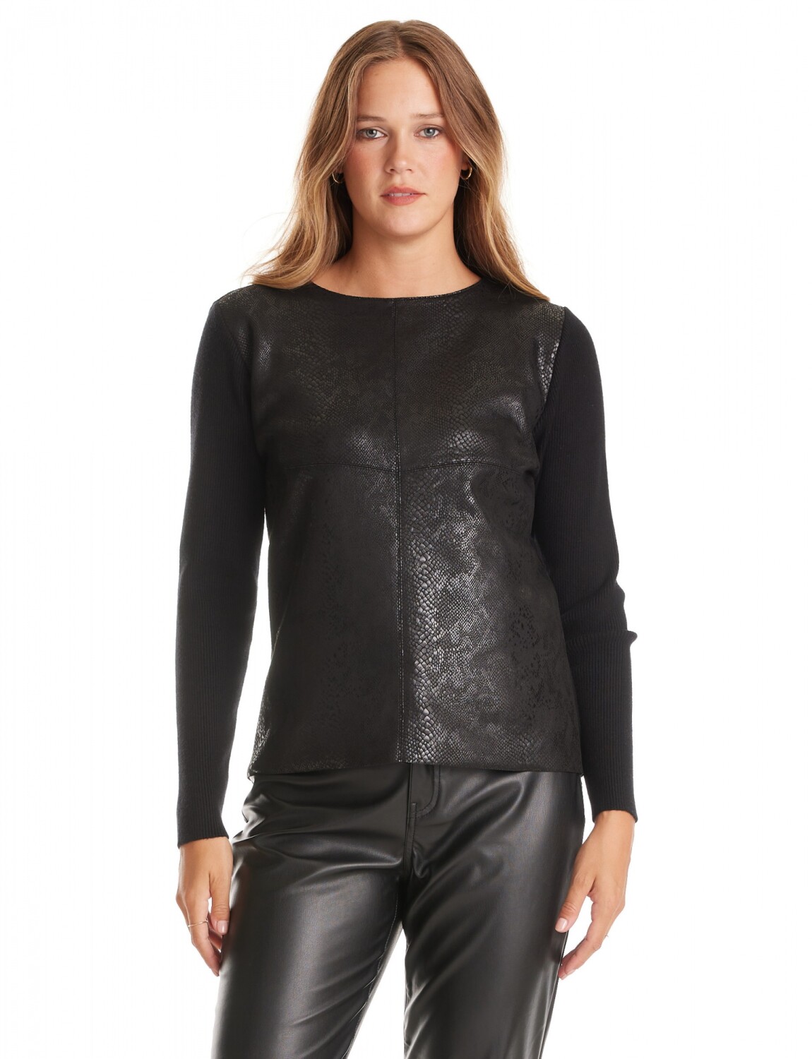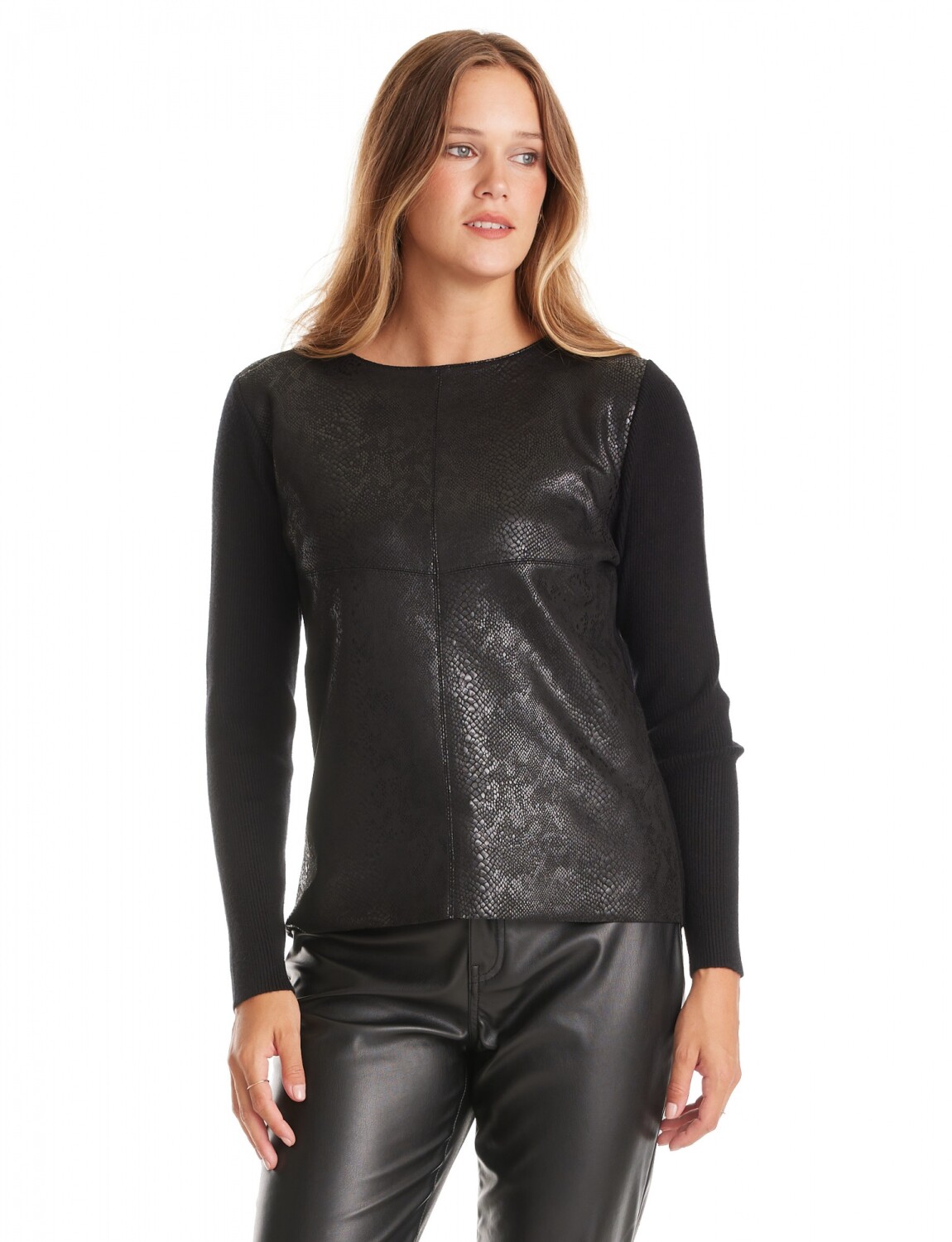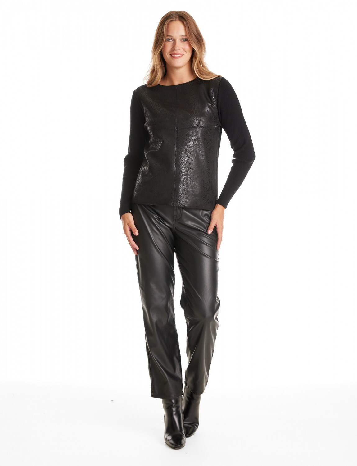 Delantera en eco cuero texturado, espalda en tejido rib.
