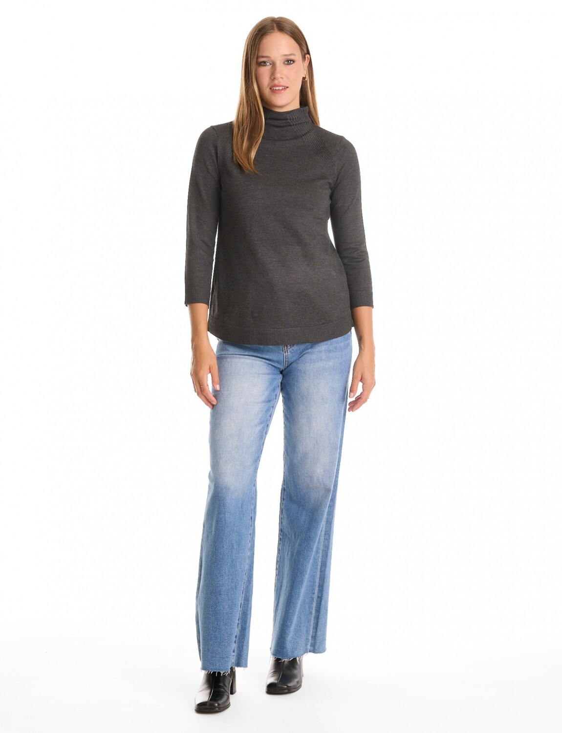 Ruedo con una terminación de rib ancho que le otorga peso y una caída impecable.