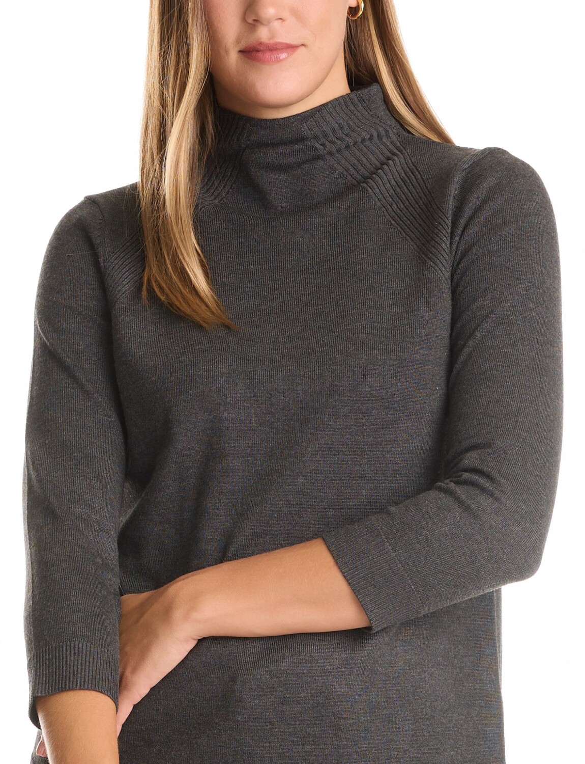 Buzo tejido en hilado fino, diseñado para mantener su forma y proporcionar una sensación de ligereza.