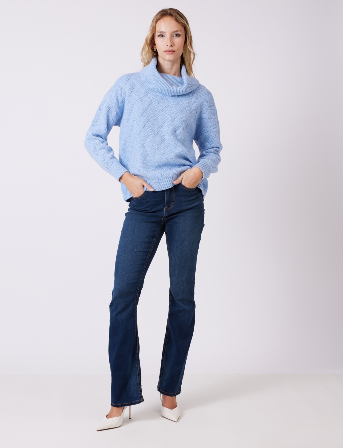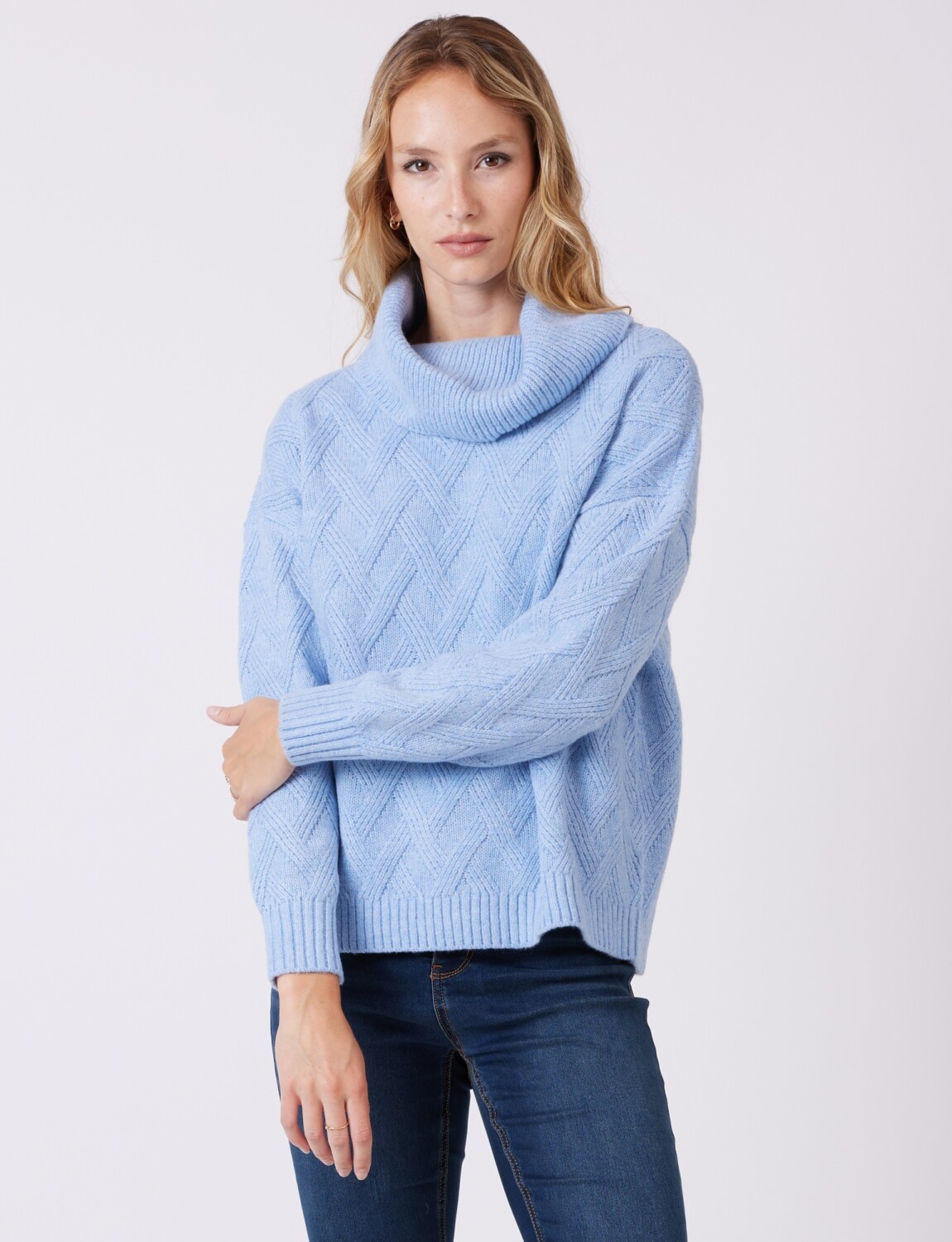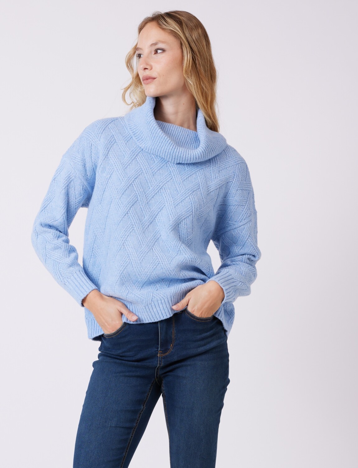 Buzo Cuello Volcado - Celeste