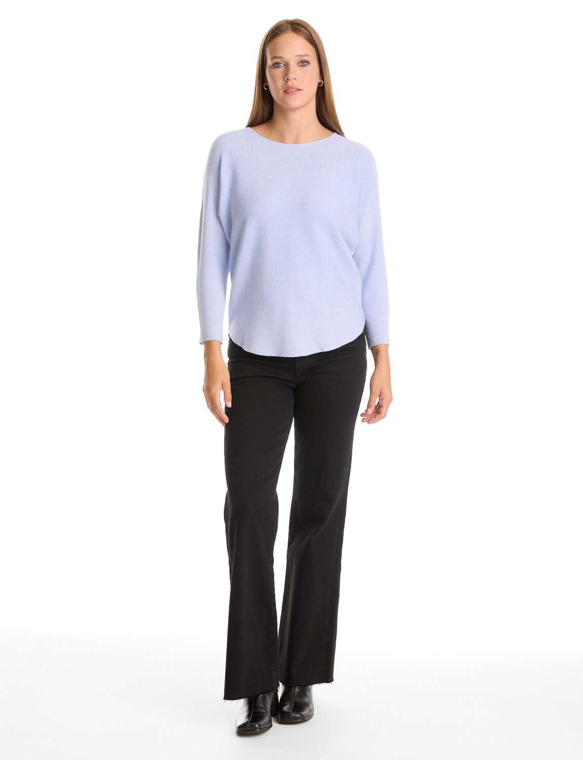 Buzo en punto rib, que no solo aporta un detalle visual moderno, sino que también asegura un ajuste flexible y confortable.
