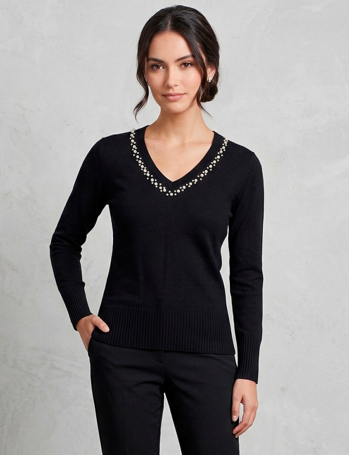 Buzo Esc V Det Perlas - Negro