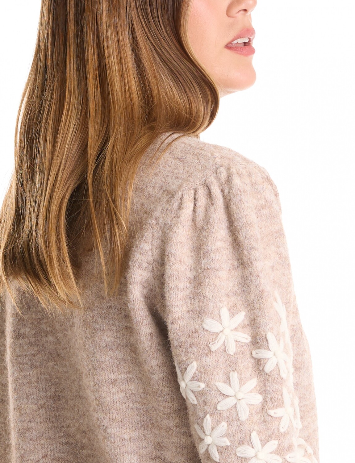 Mangas largas con diseño de flores bordadas a contraste.