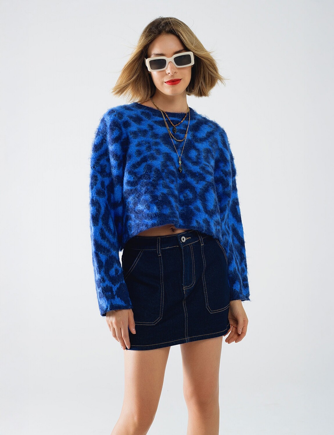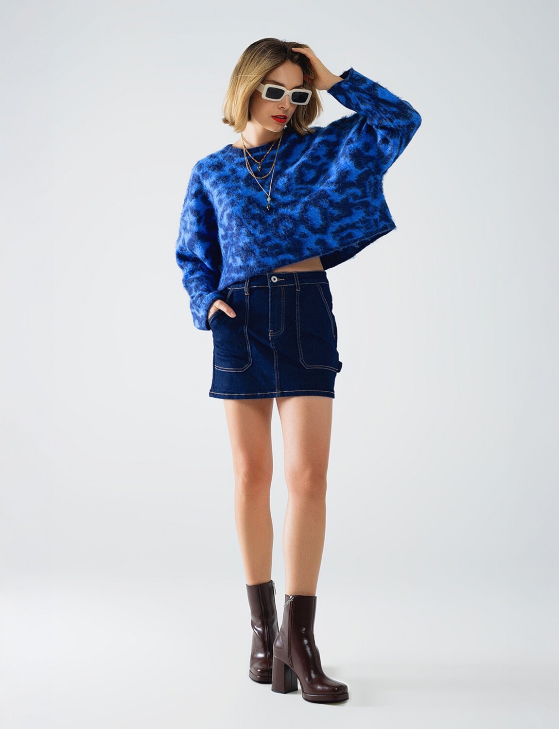 Q2 Buzo Lana Print - Azul Buzo Lana Print - Azul Buzo de lana, marca Q2.