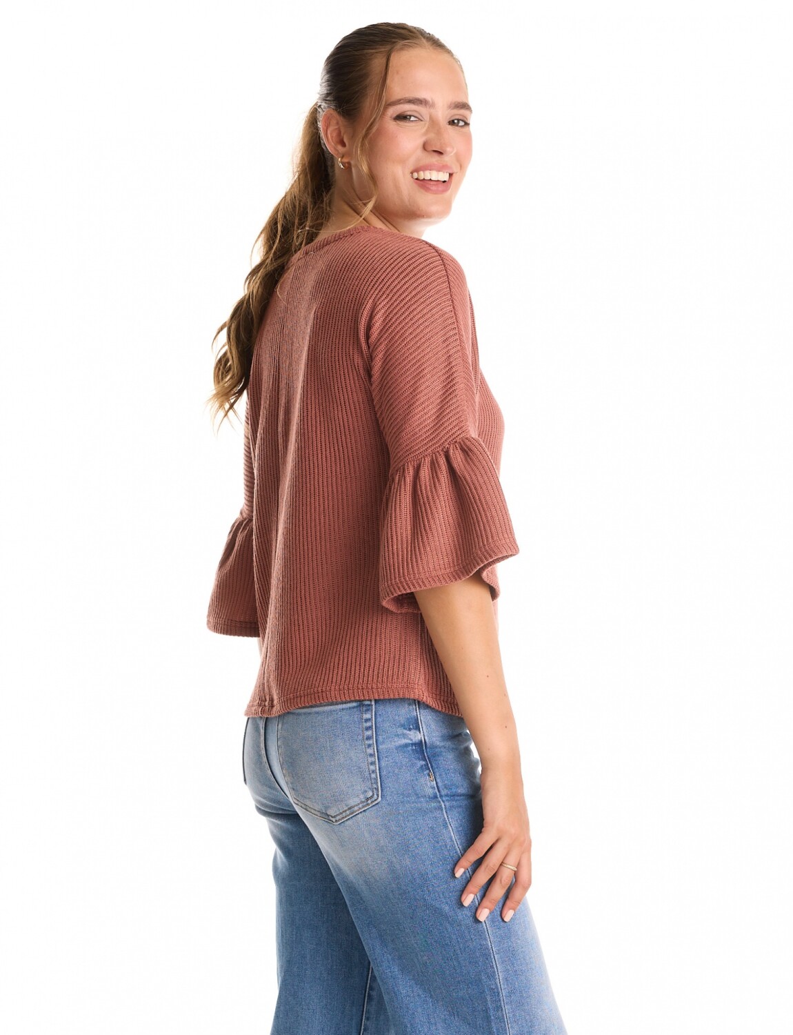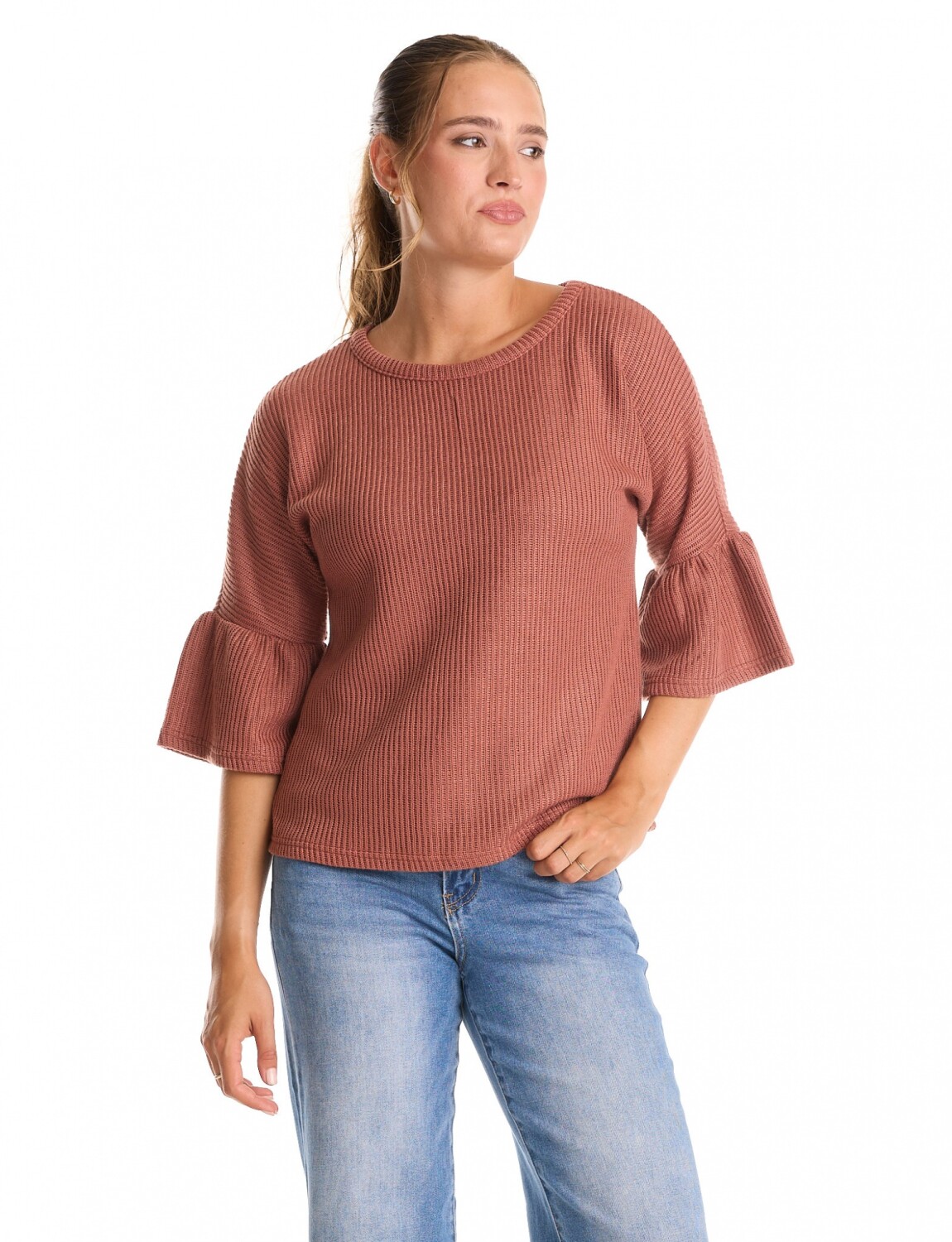 Manga ¾ con terminación amplia.