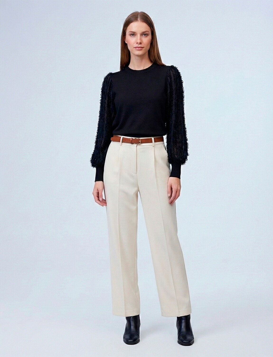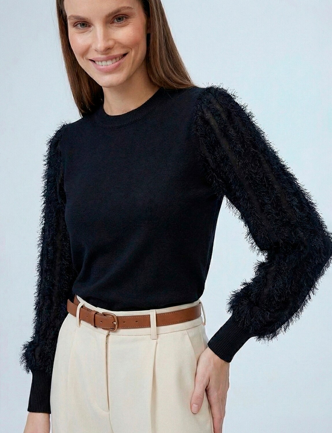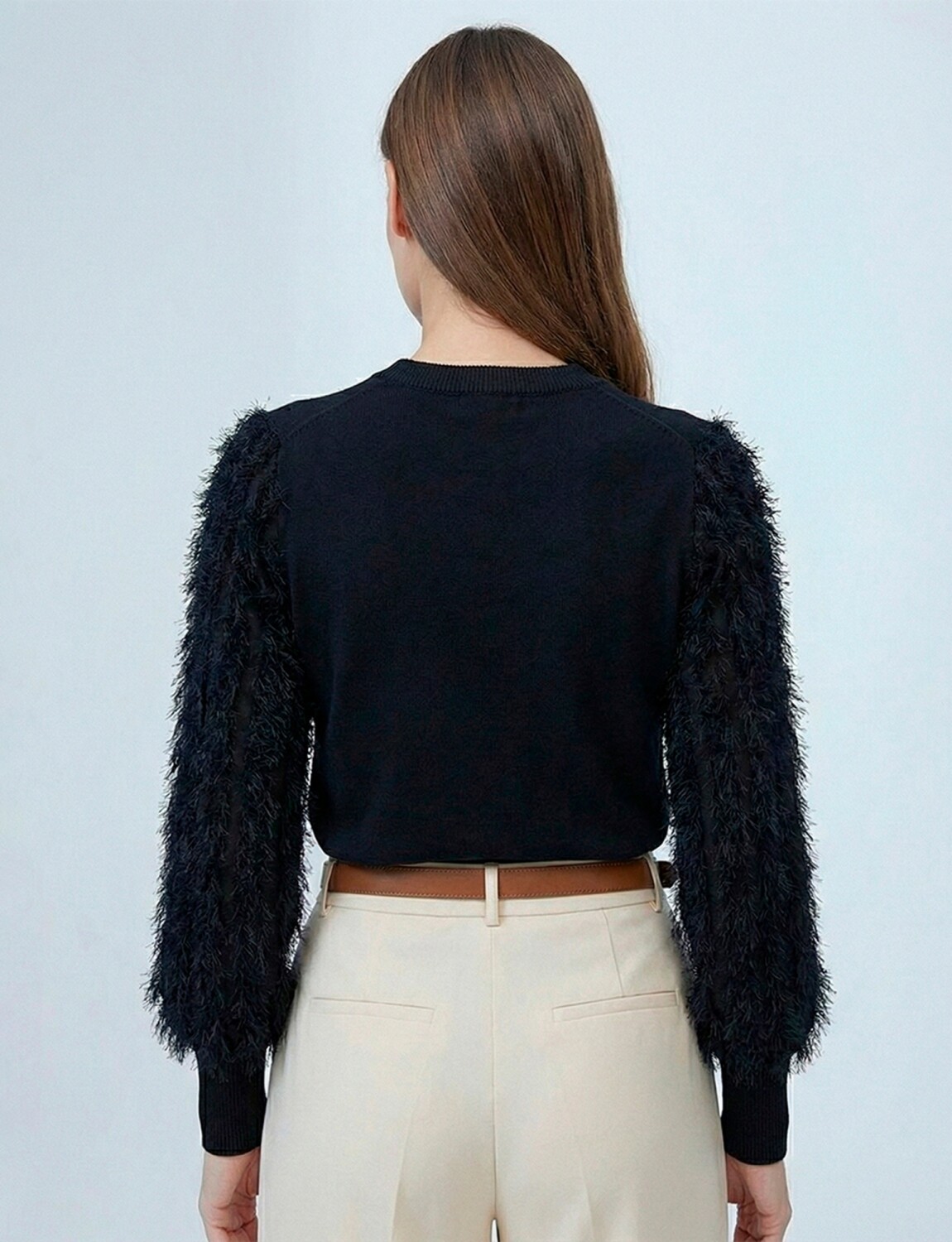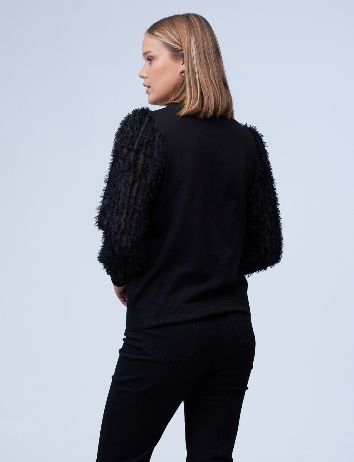 Mangas en gasa y bordado desflecado.