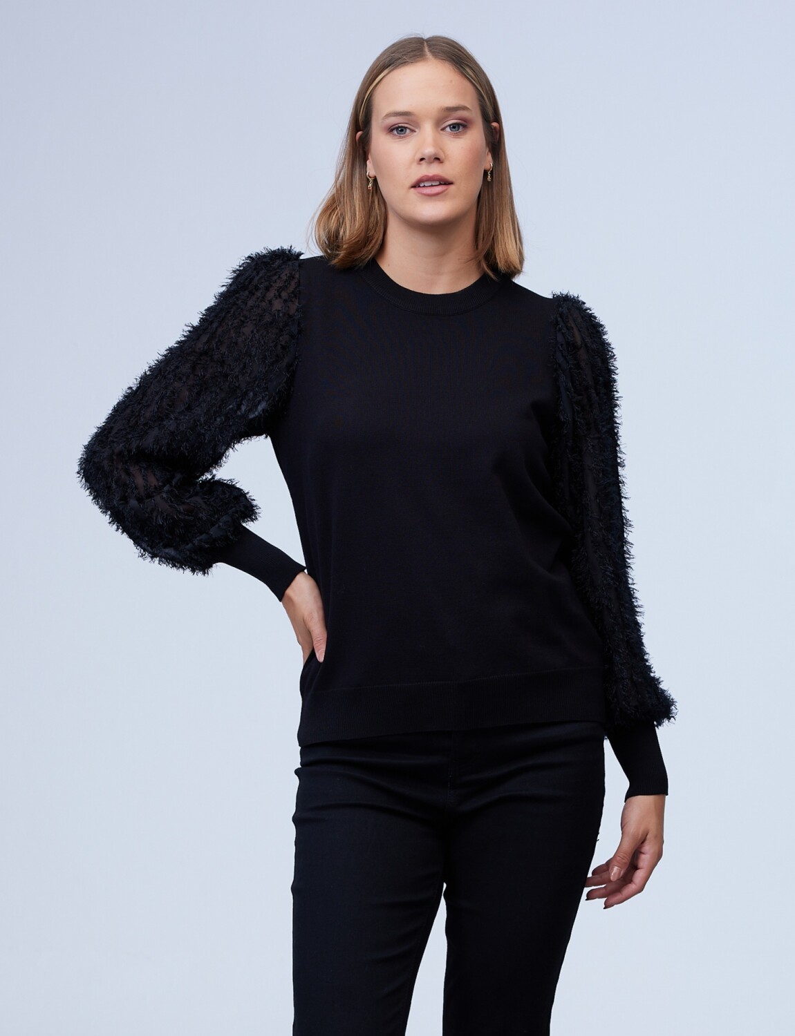Buzo Manga Desflecada - Negro