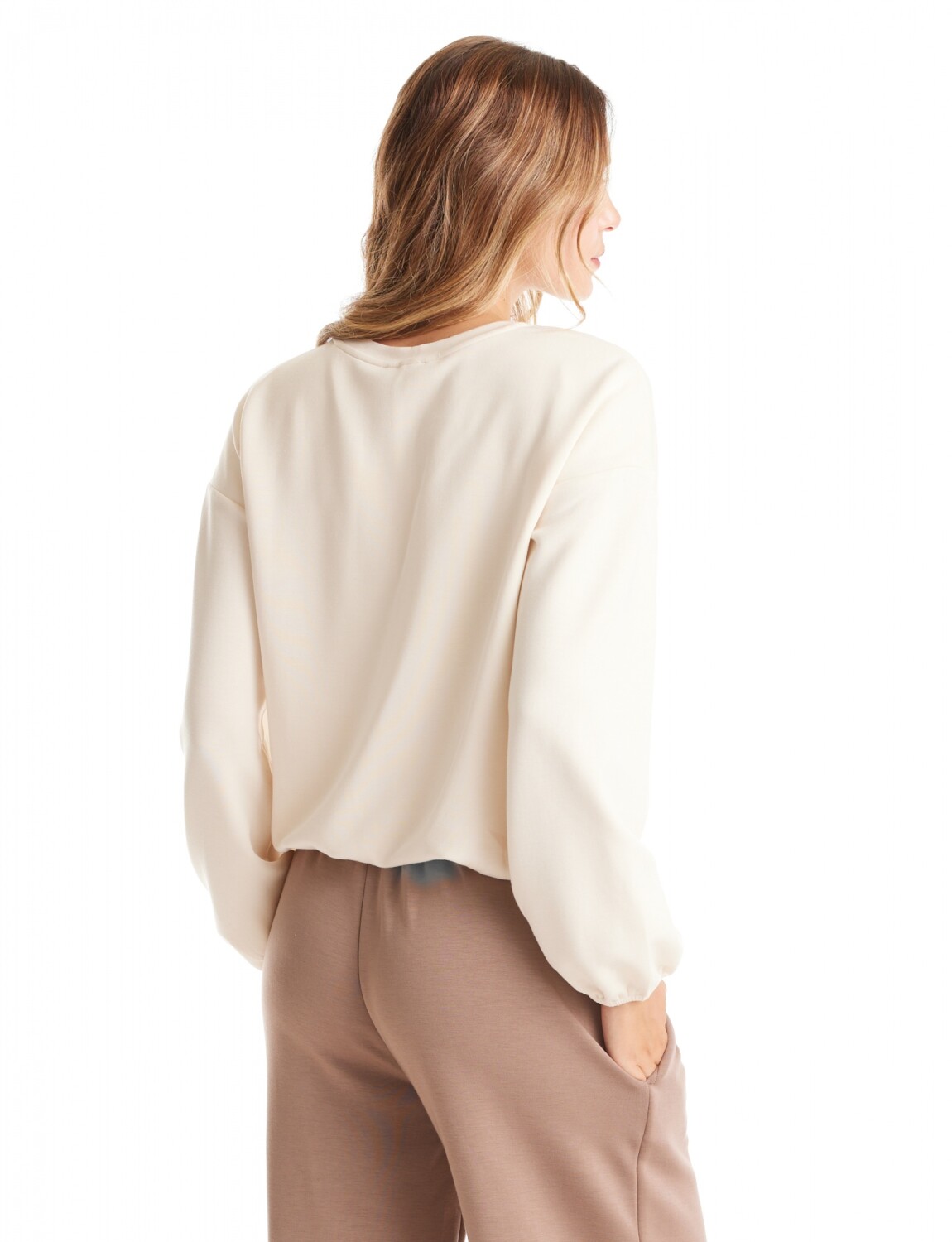 Buzo confeccionado en punto de alta densidad con caída fluida y tacto aterciopelado.