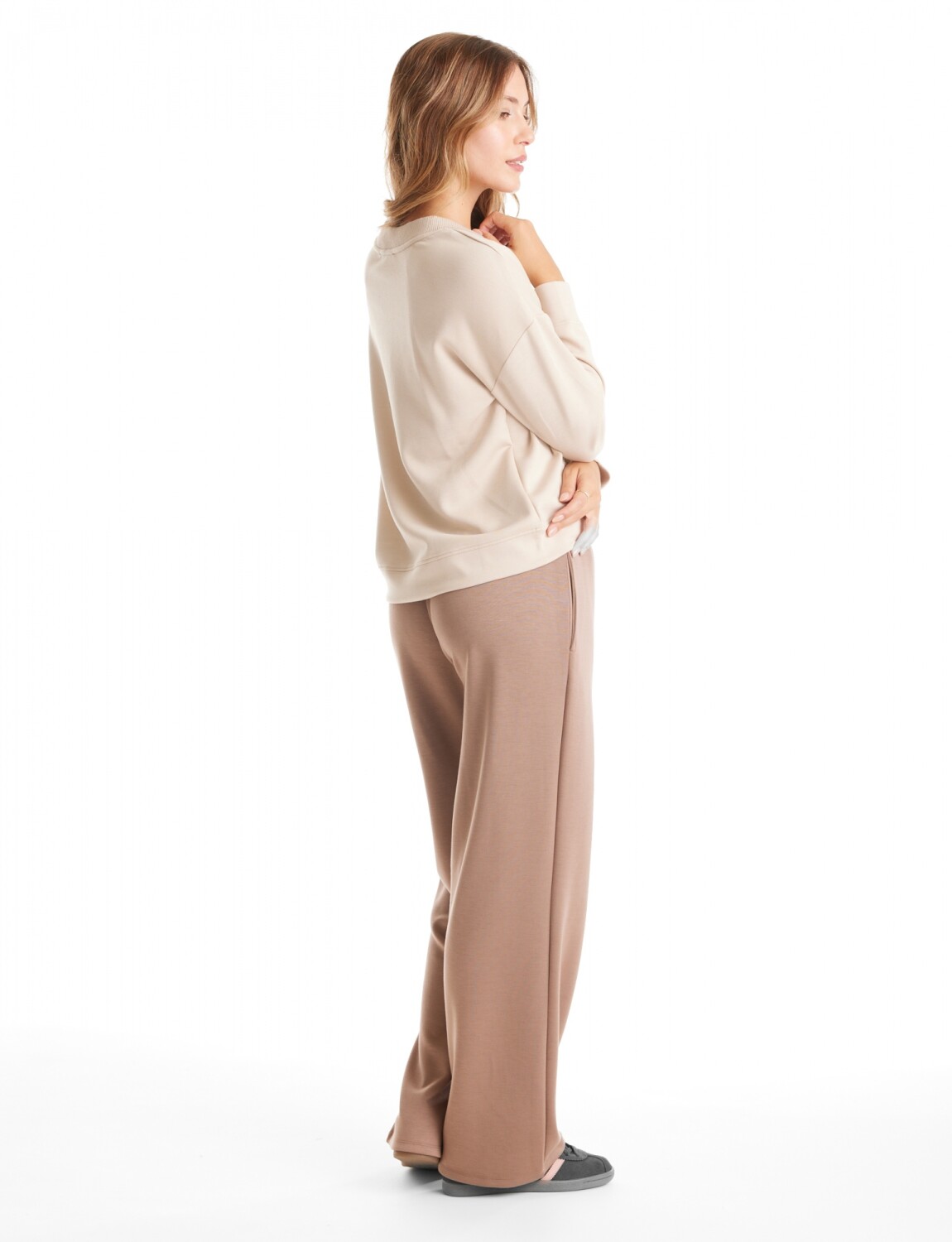 Buzo confeccionado en punto de alta densidad con caída fluida y tacto aterciopelado.