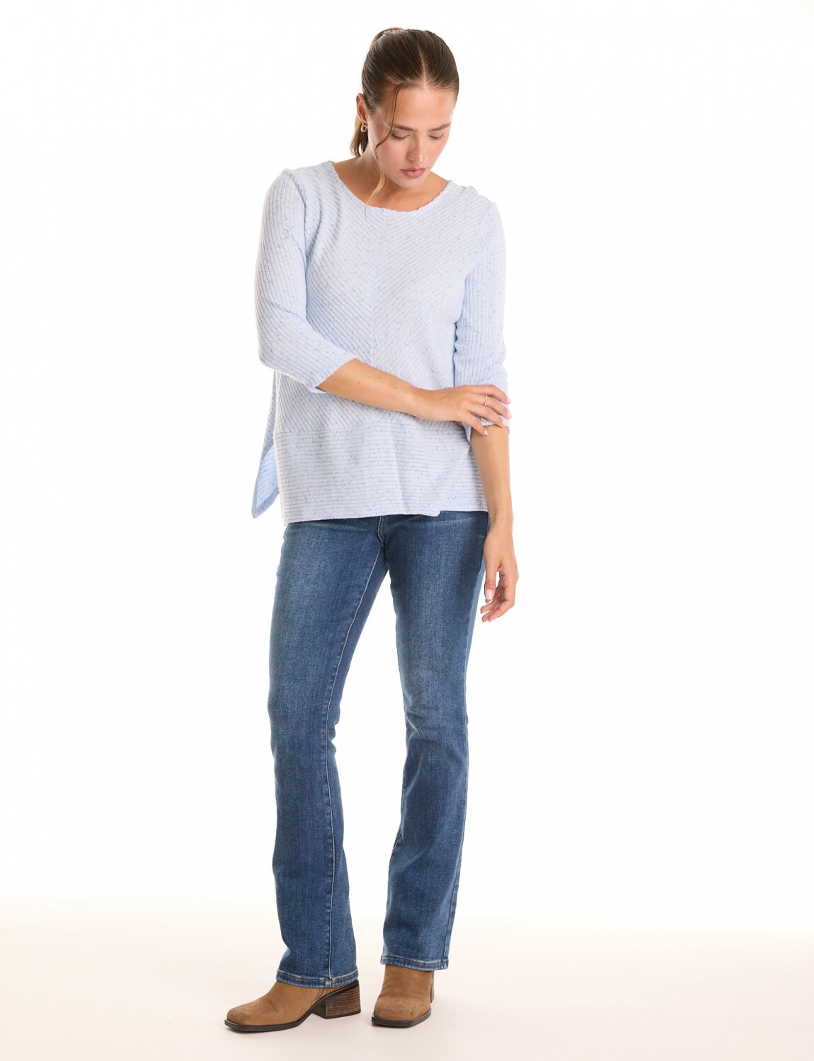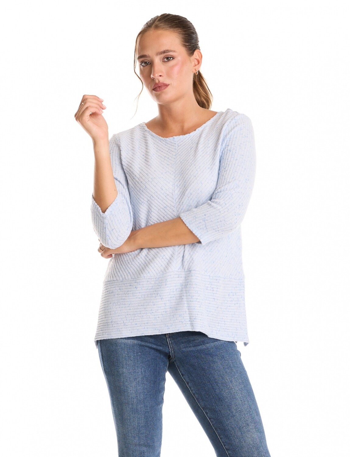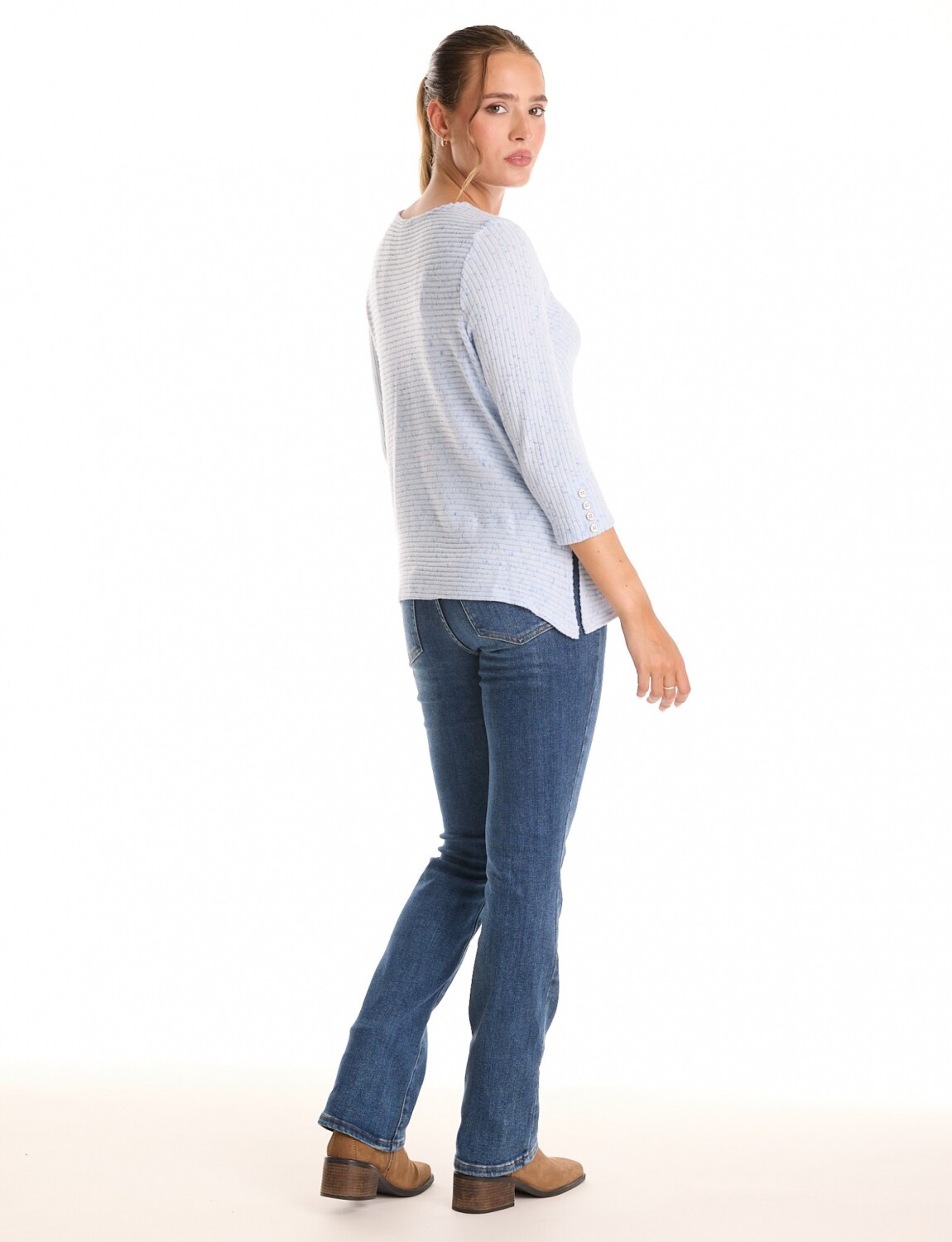 Cuello a la base y mangas 3 / 4 con detalle de botones.