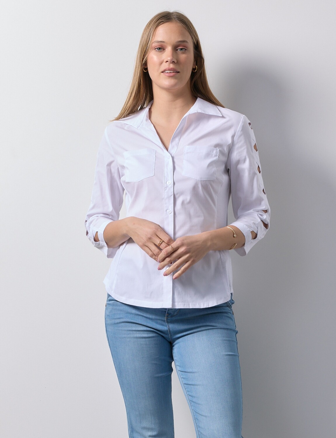Camisa Detalle Manga - Blanco