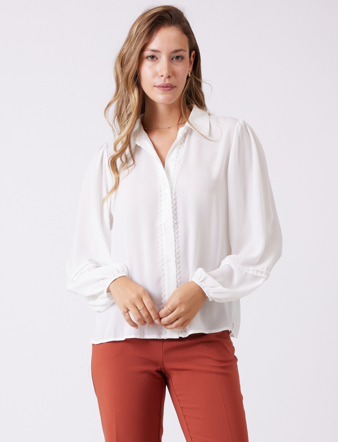 Camisa Gasa & Detalles Encaje - Crudo