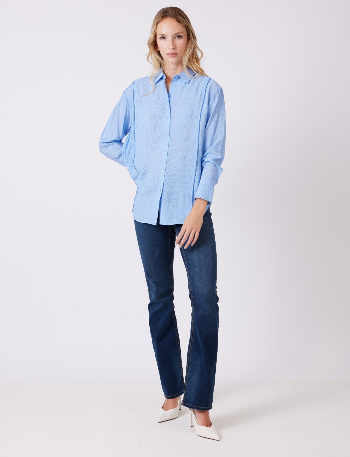 Camisa Lineas - Celeste/multi