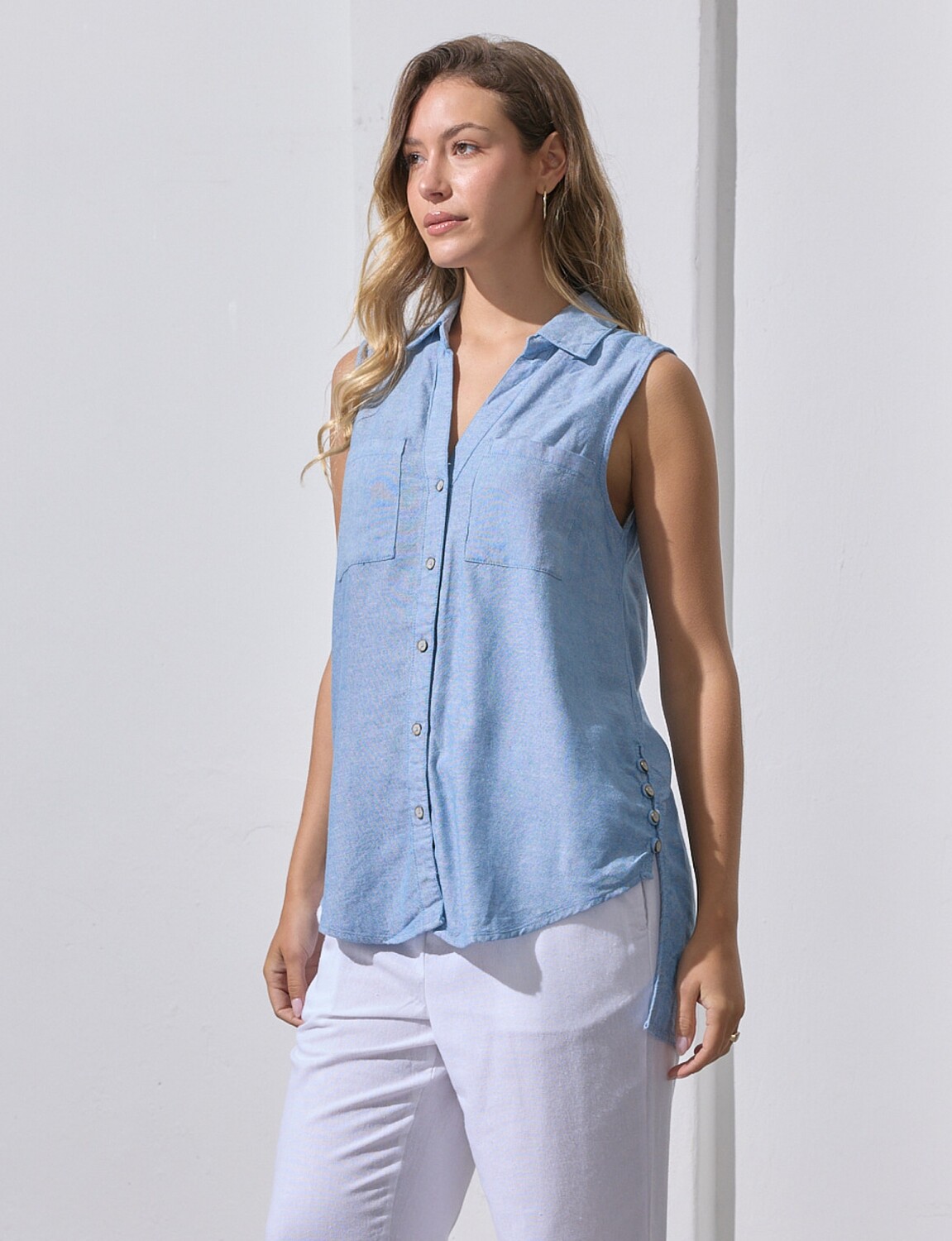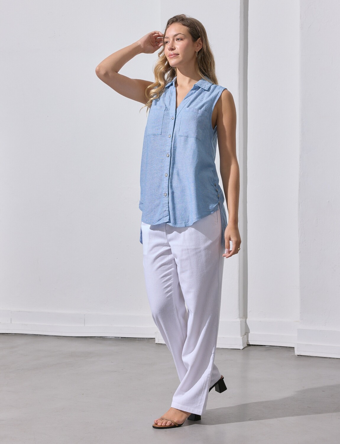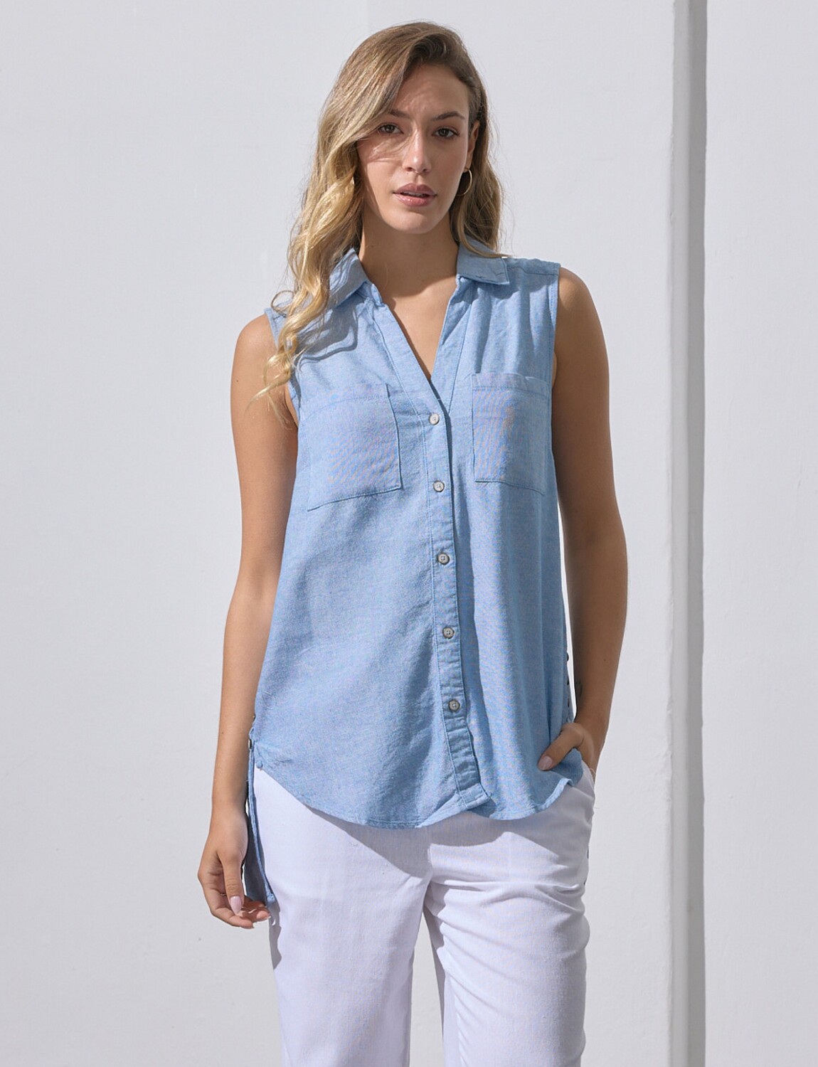 Camisa sin mangas en lino, marca Zac & Rachel.