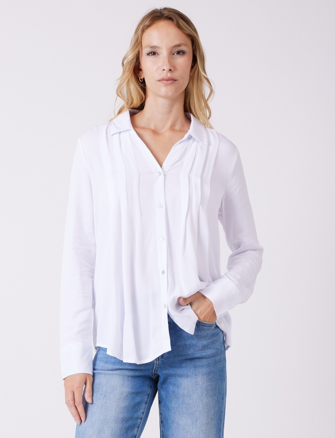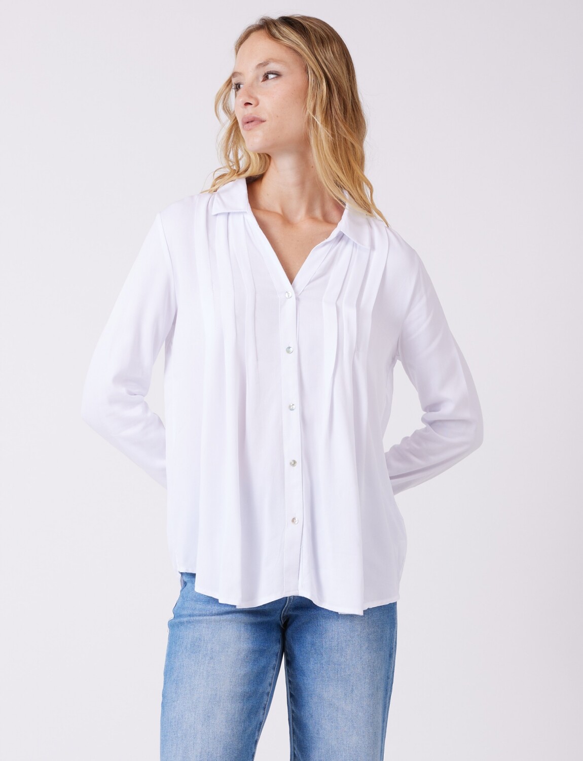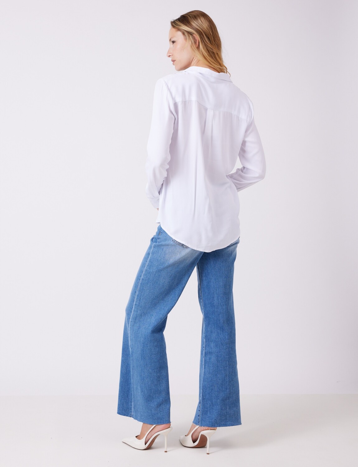 Camisa en rayón que garantiza transpirabilidad y una caída fluida que se adapta naturalmente a tu silueta.