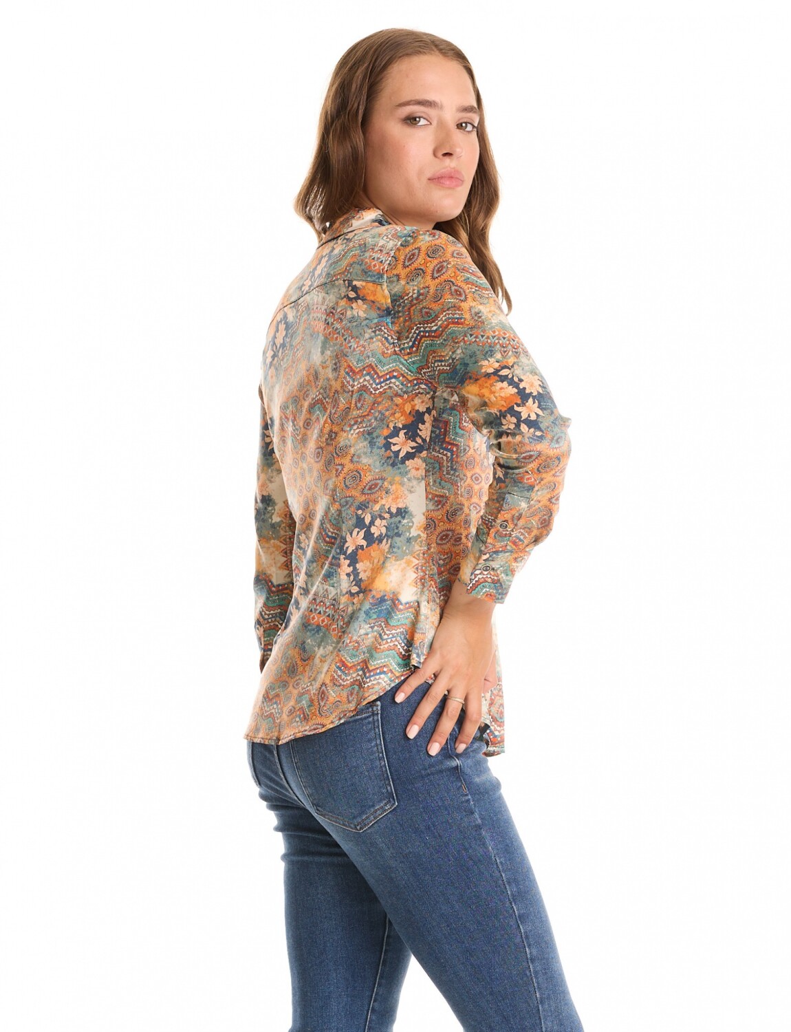 Camisa Saten Printed - Multi/anaranjado