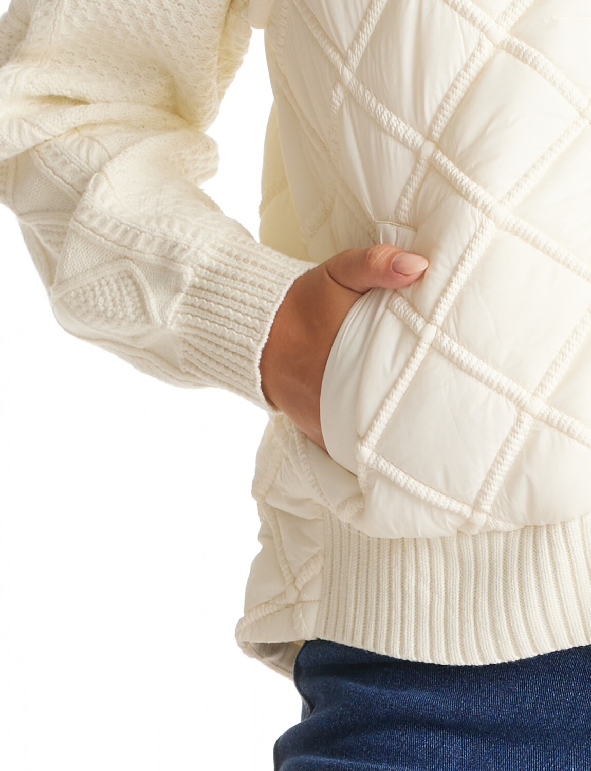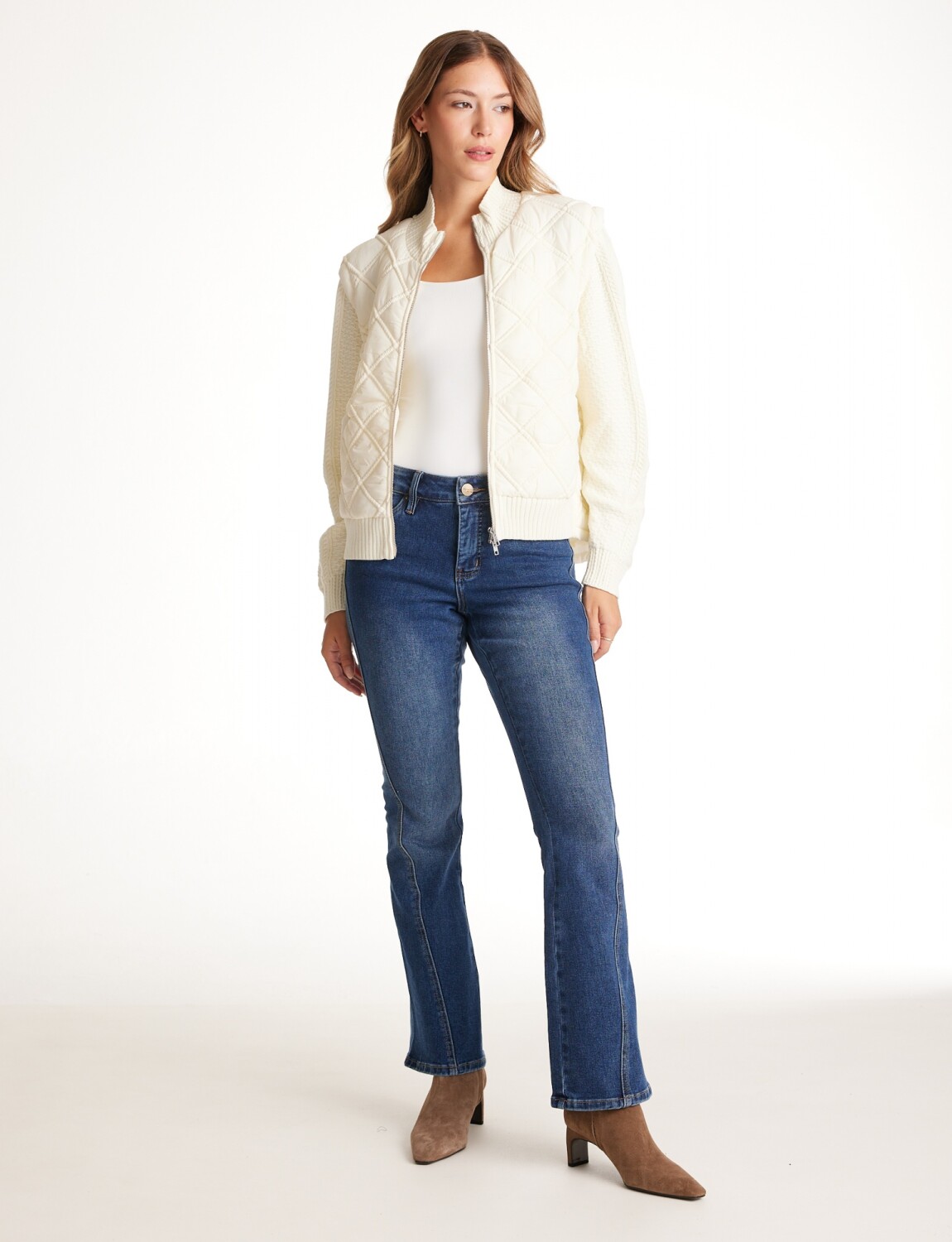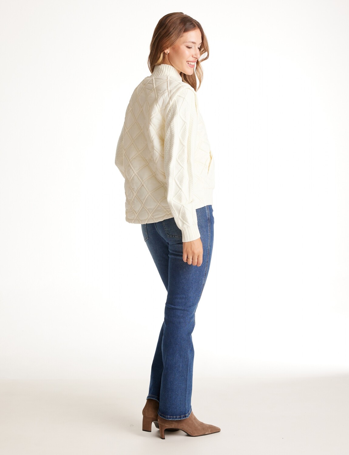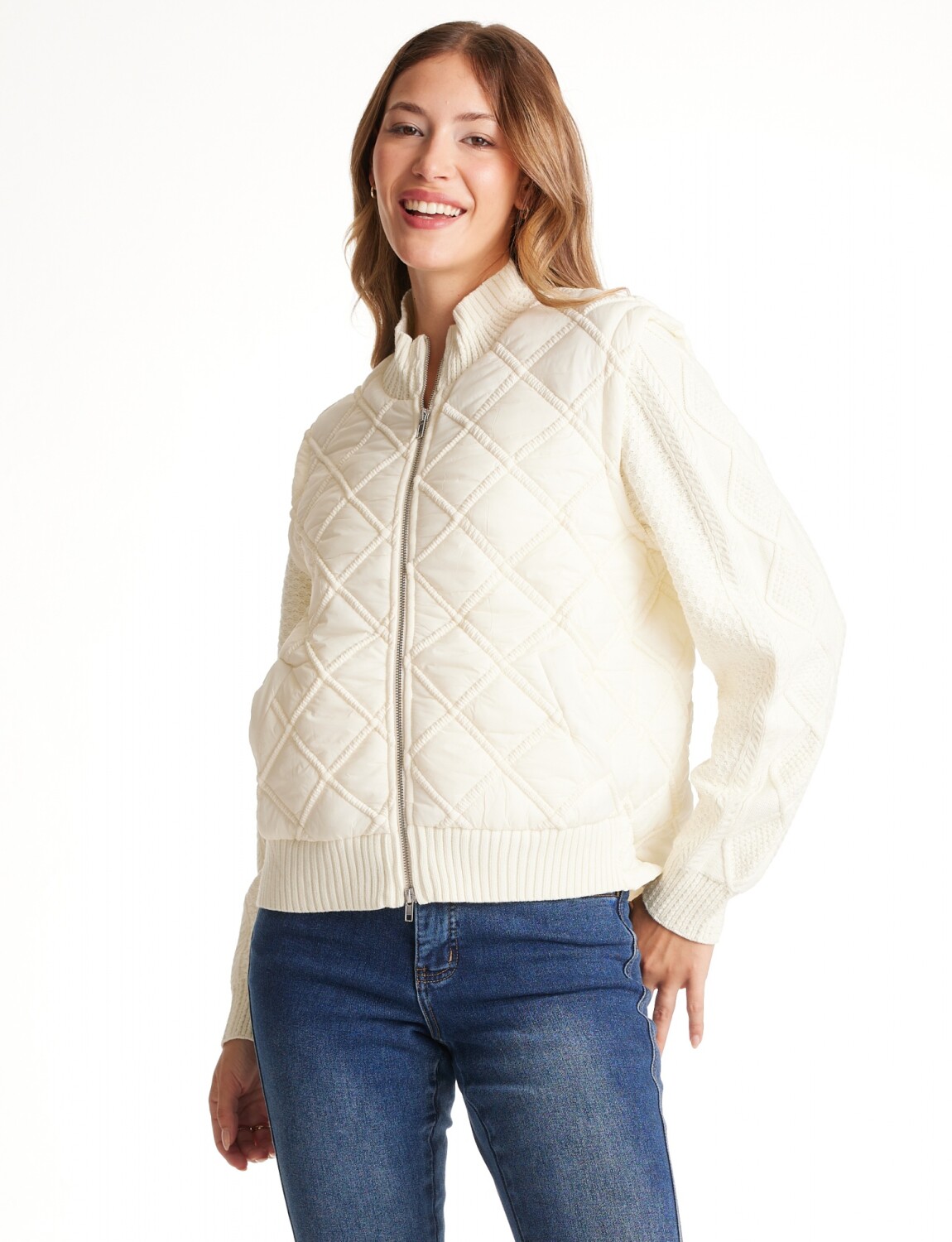 Diseño que simula chaleco, con cuello alto y mangas largas tejidas.