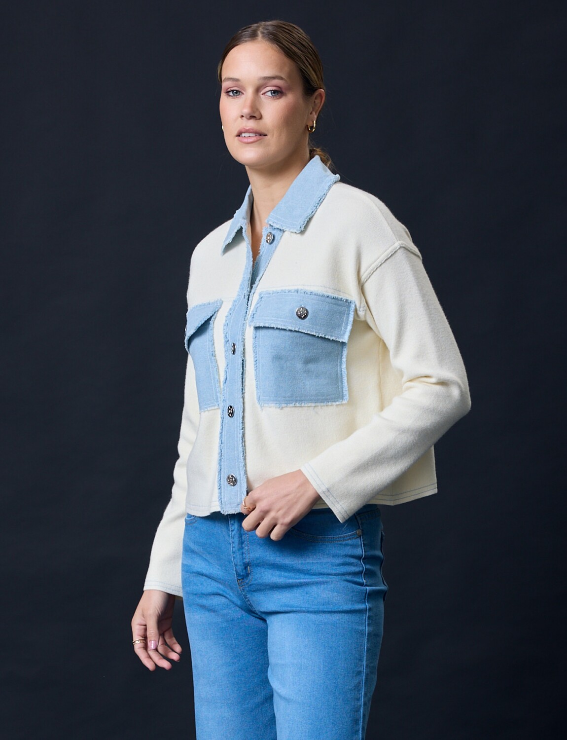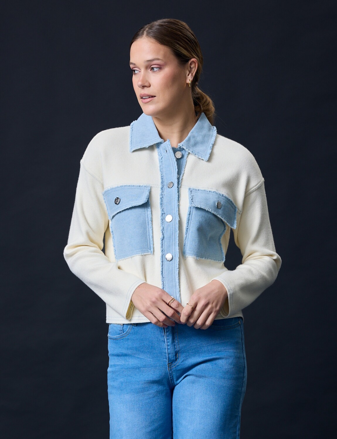 Delantera con bolsillos.