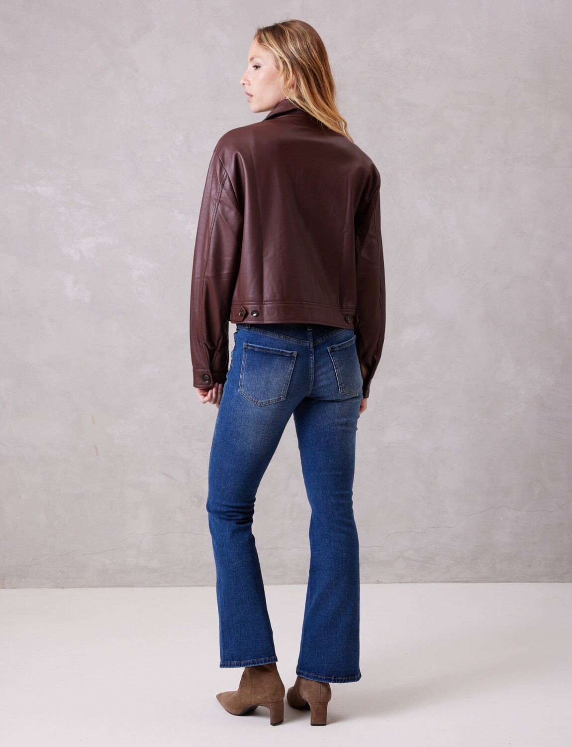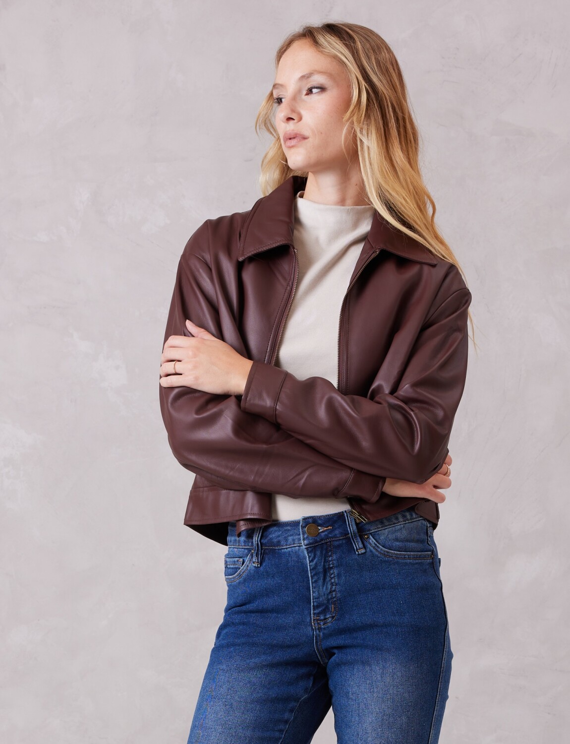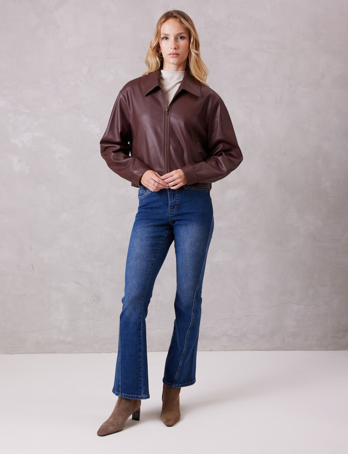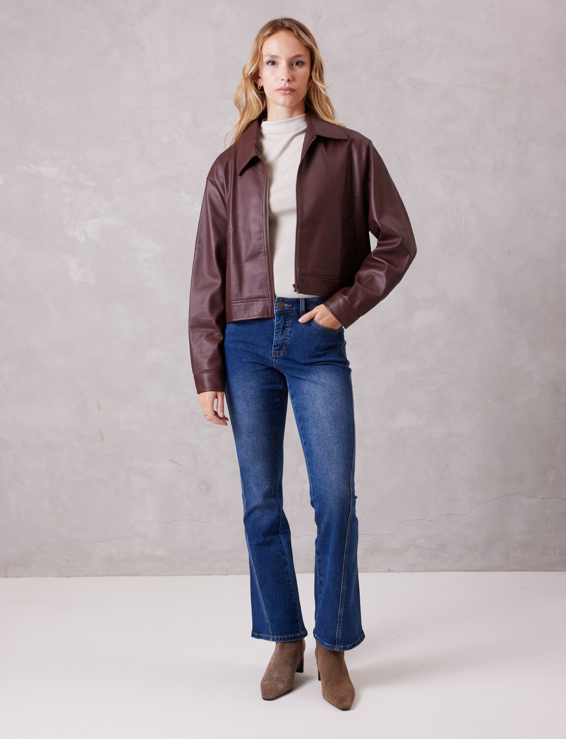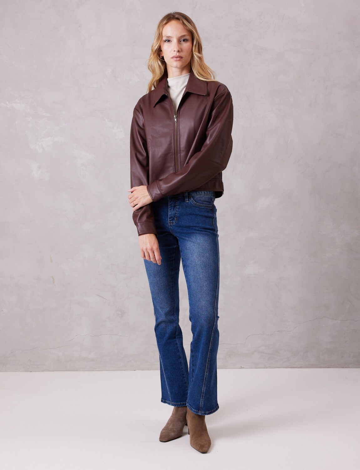 Camperita en eco cuero de alta calidad, ofreciendo un acabado liso y una mano sumamente suave.