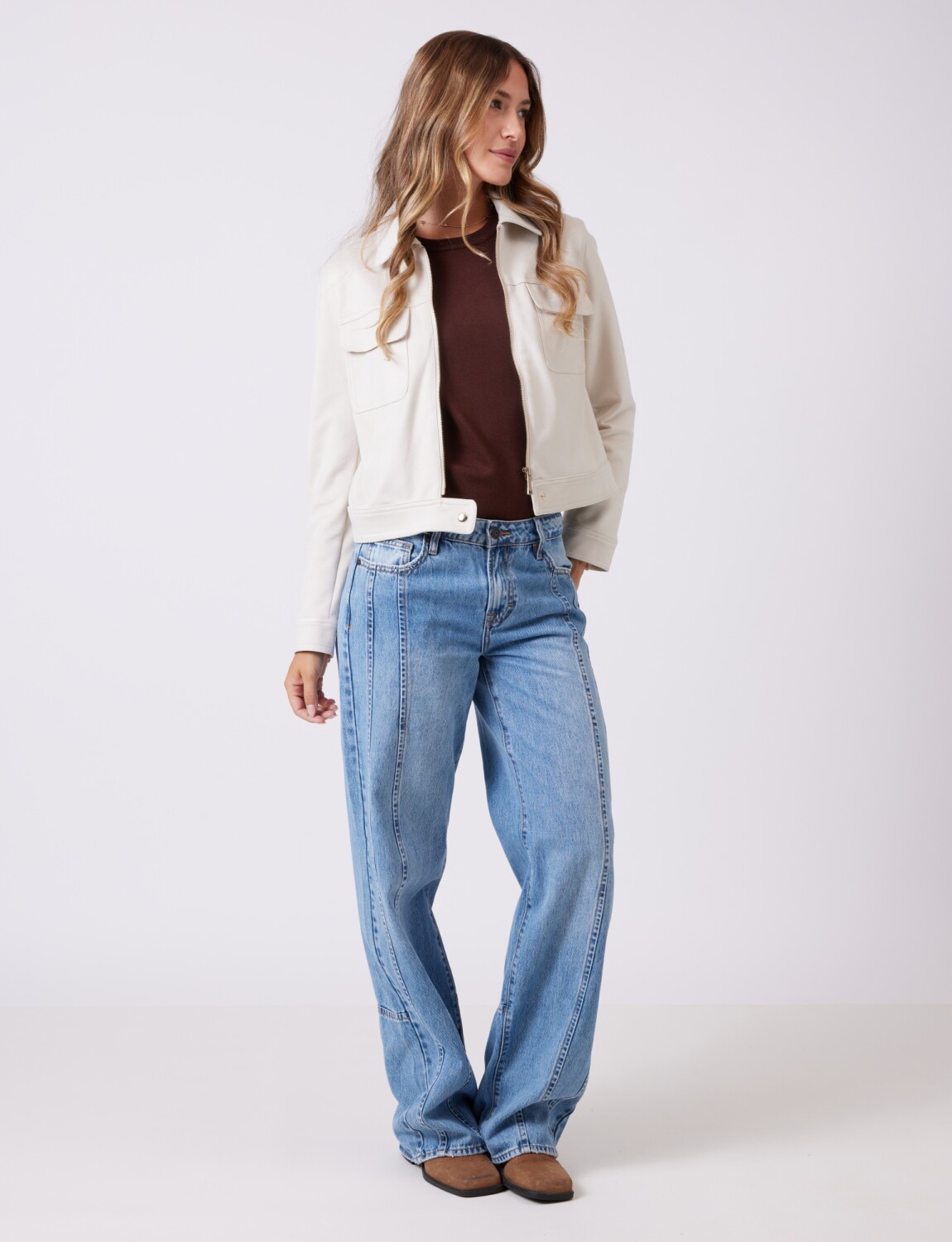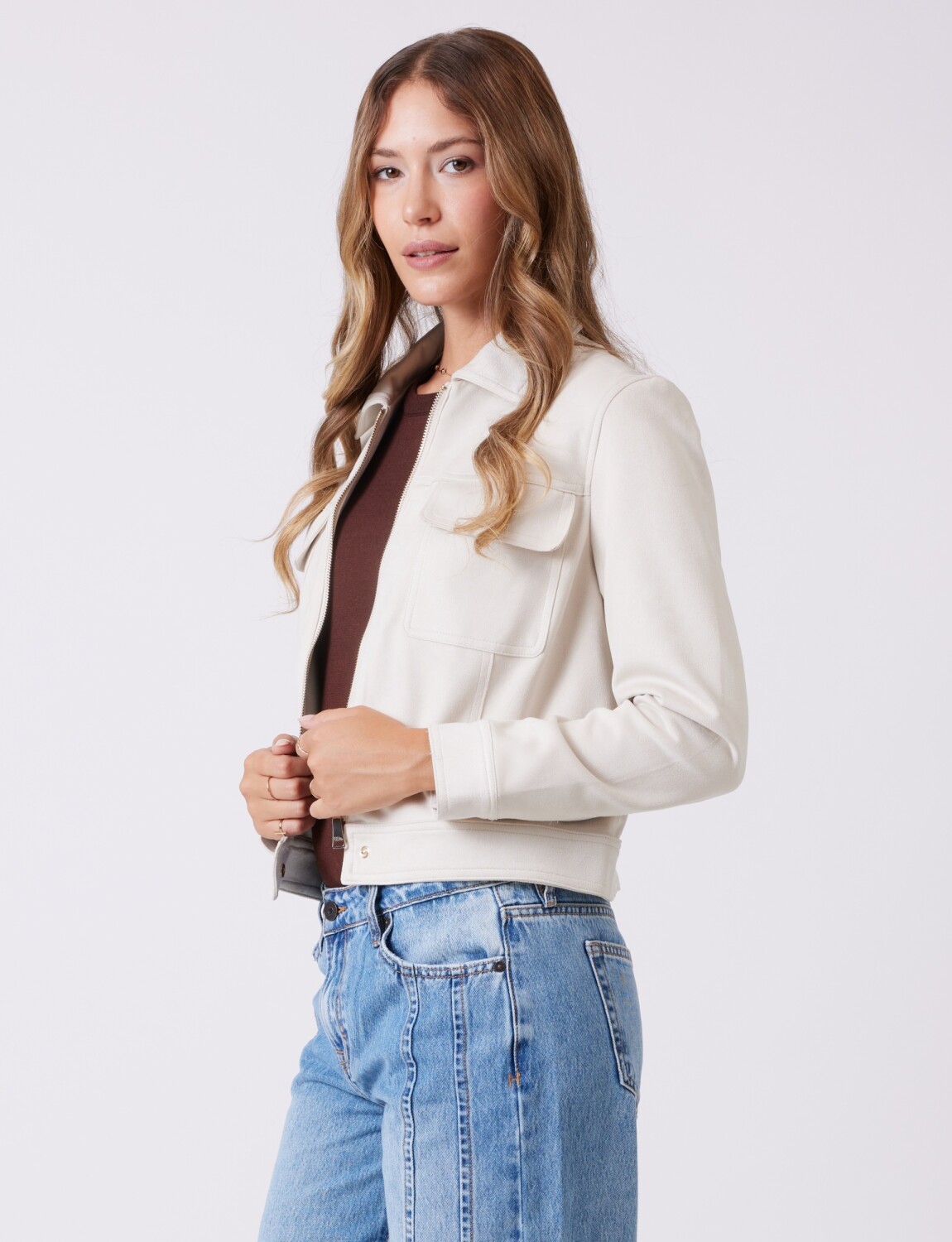 Chaqueta en símil suede, marca Elie Tahari.
