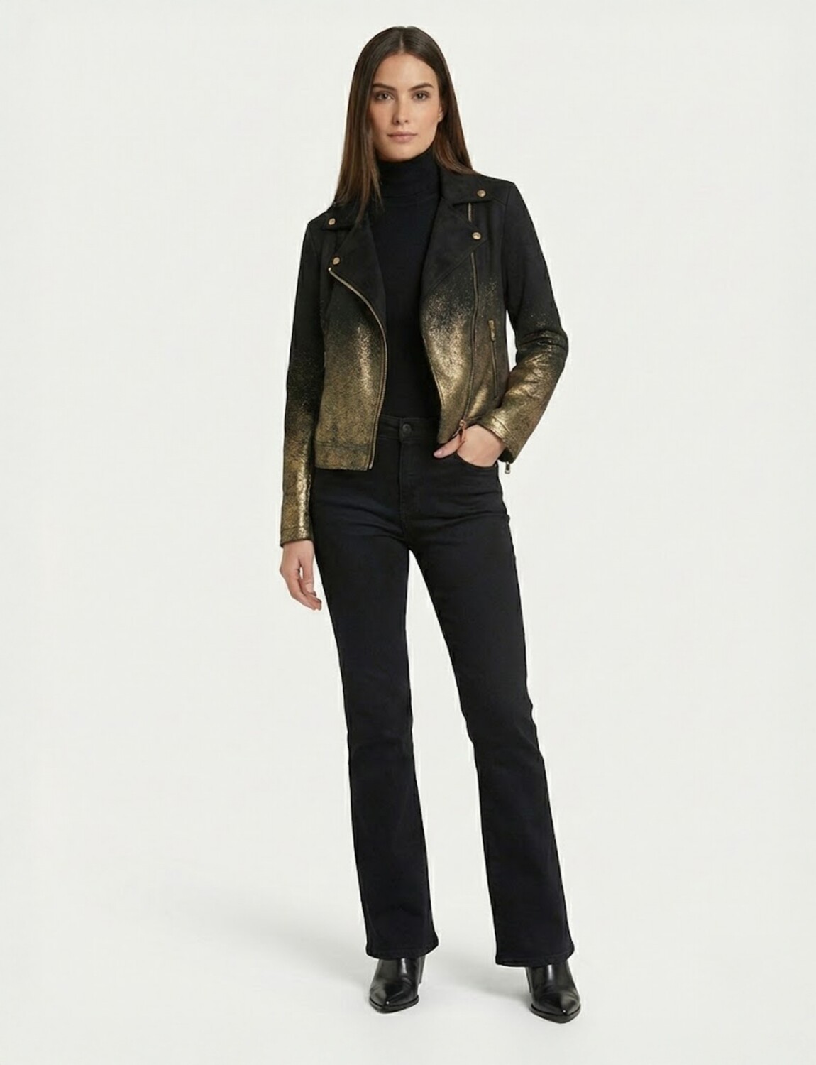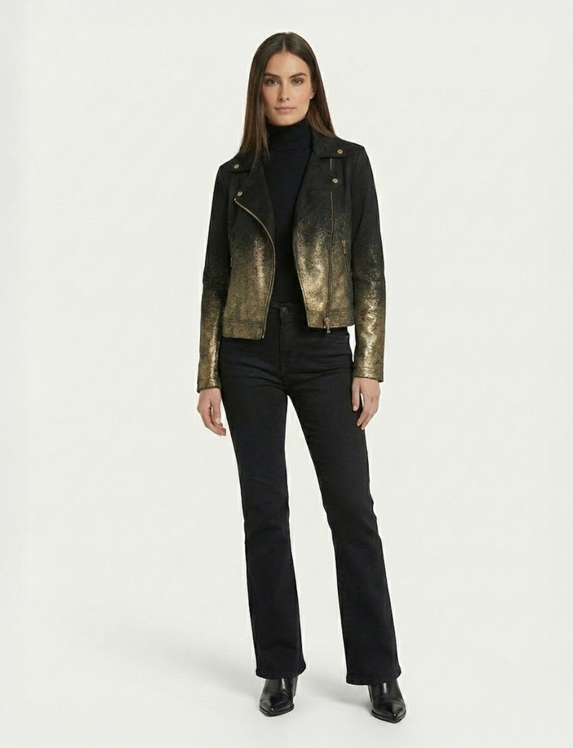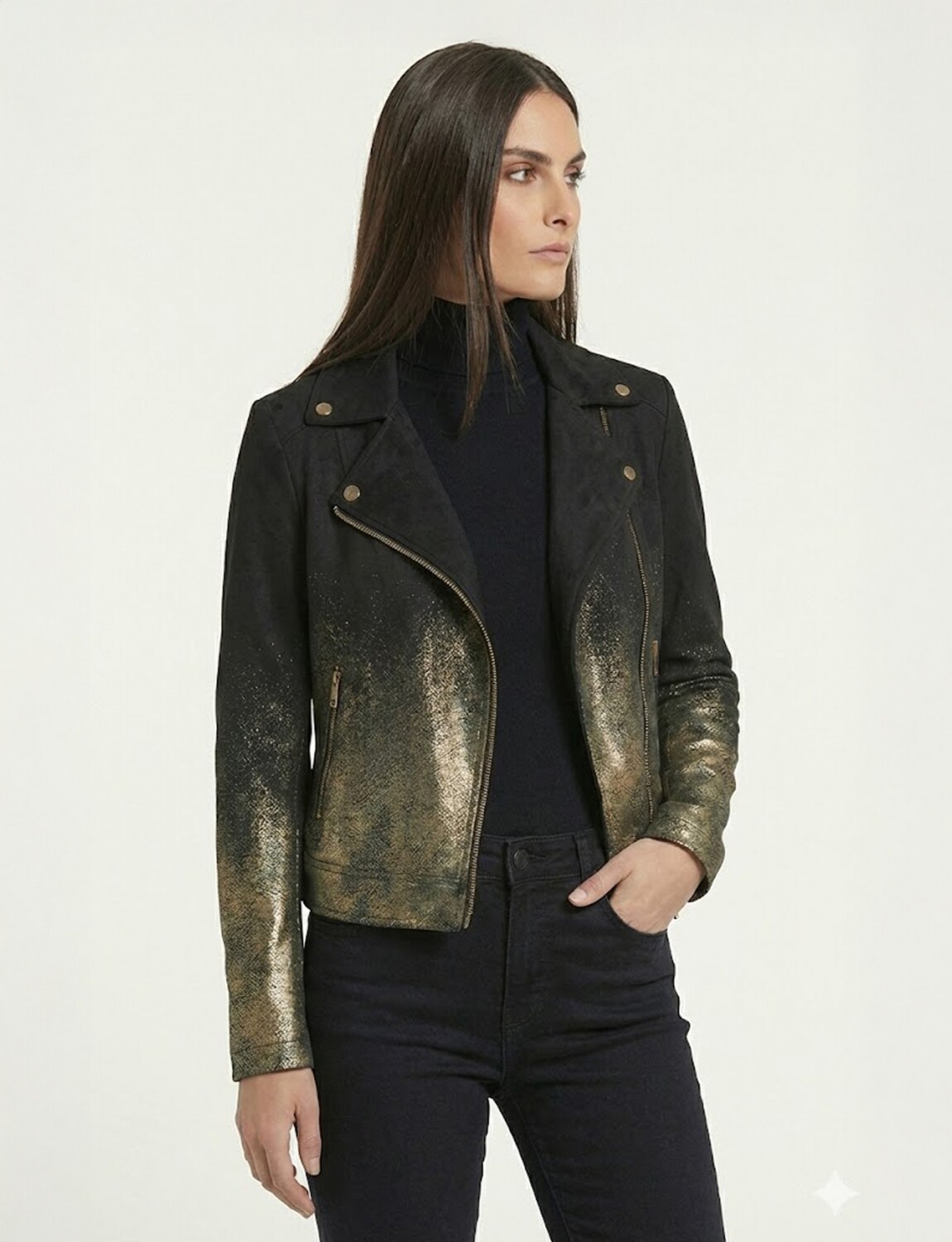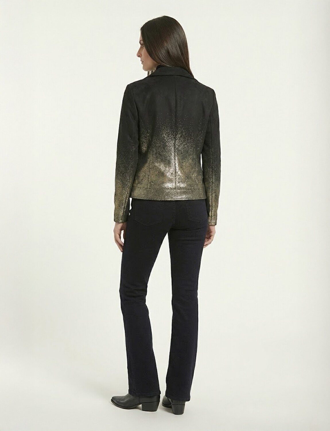 Campera en símil suede con efecto degradé metalizado, marca Ruby Rd.