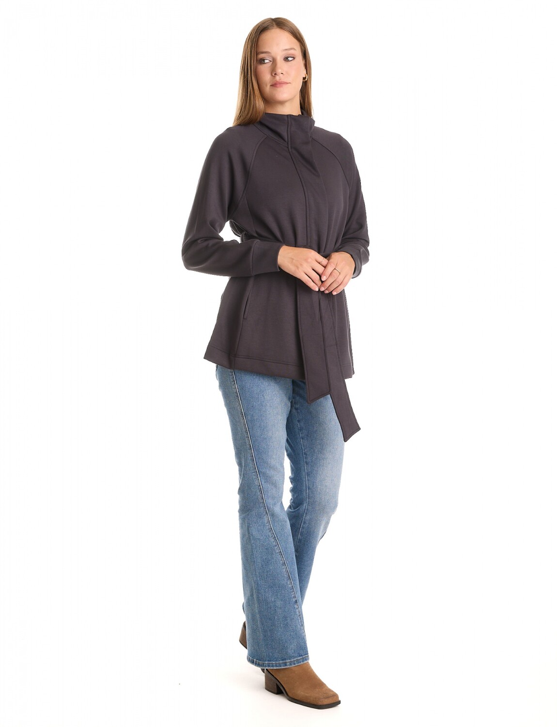 Chaqueta diseñada para ofrecer una silueta definida sin sacrificar el confort, esta prenda destaca por su tejido de alta calidad y un diseño envolvente.