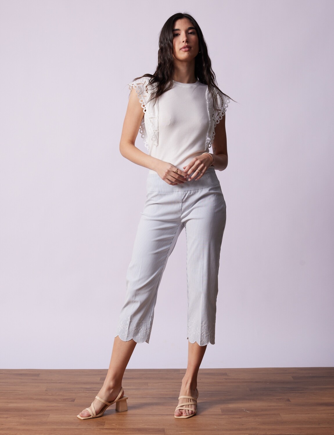 Pantalón capri en gabadina elastizada, marca Zac & Rachel.