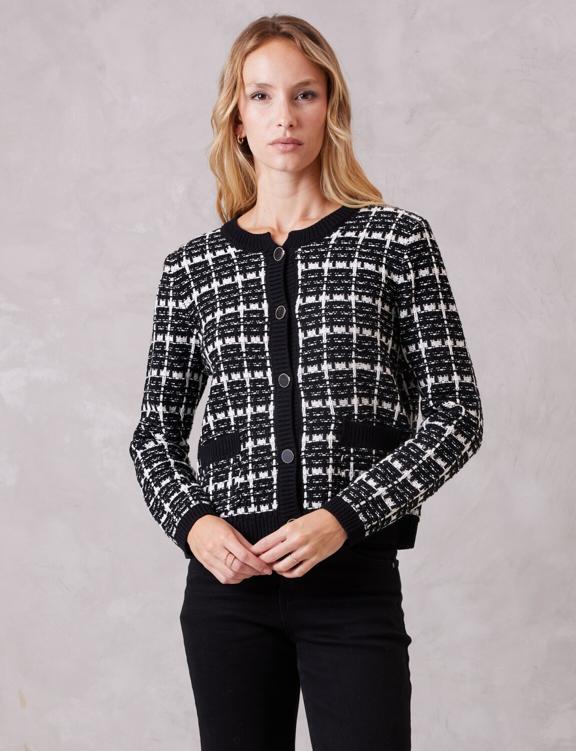 Cardigan Houndstooth - Negro/blanco