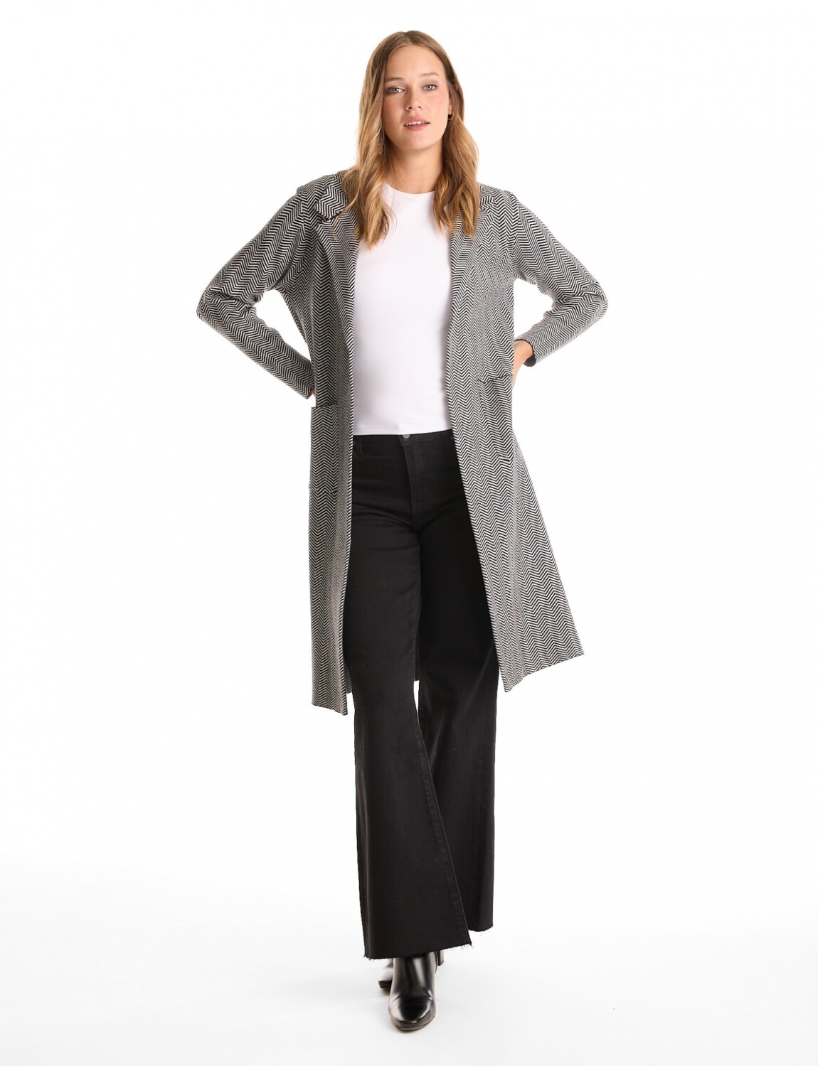 Cardigan Largo Printed - Negro/blanco