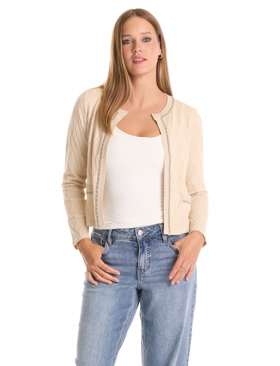 Cardigan Rombos & Cadena - Beige