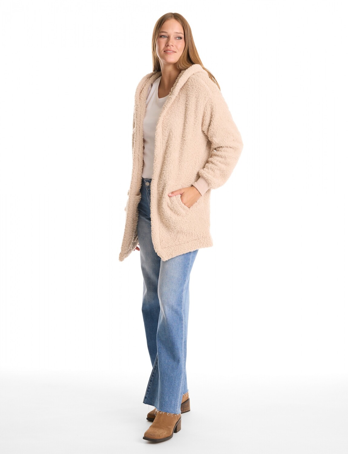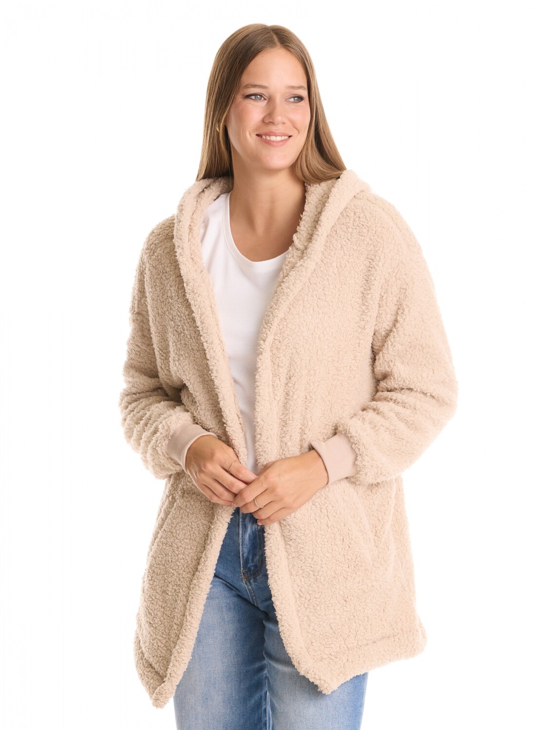 Cardigan símil corderito que ofrece una sensación térmica superior.
