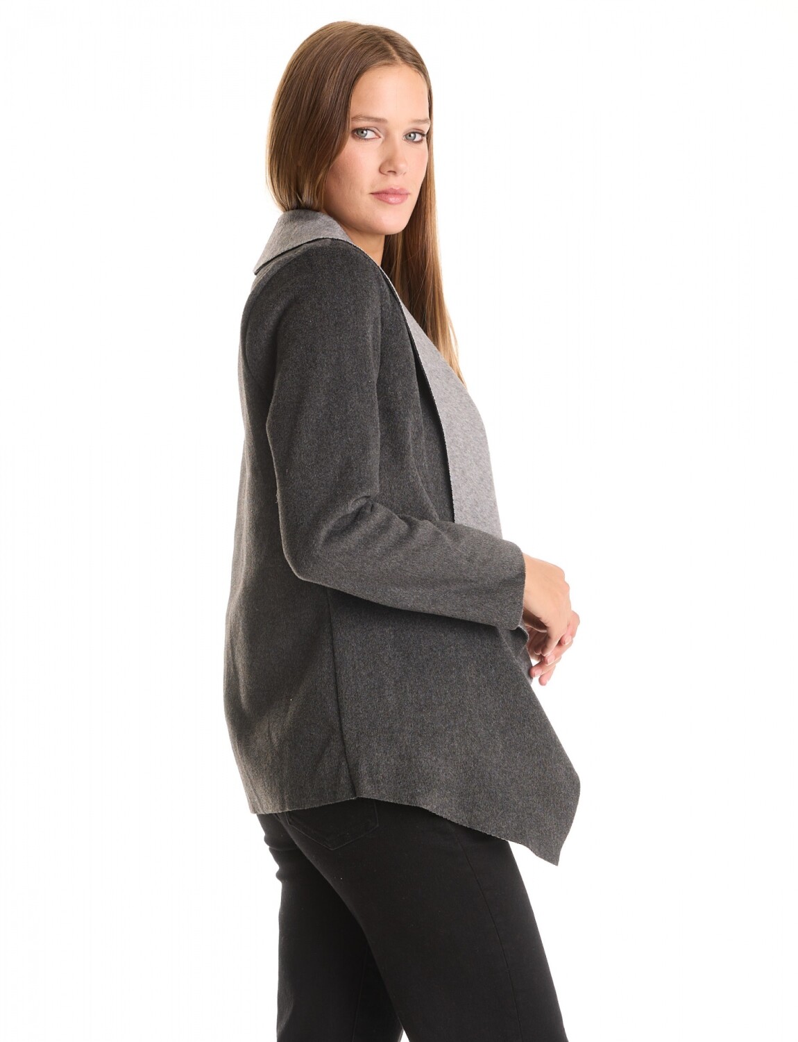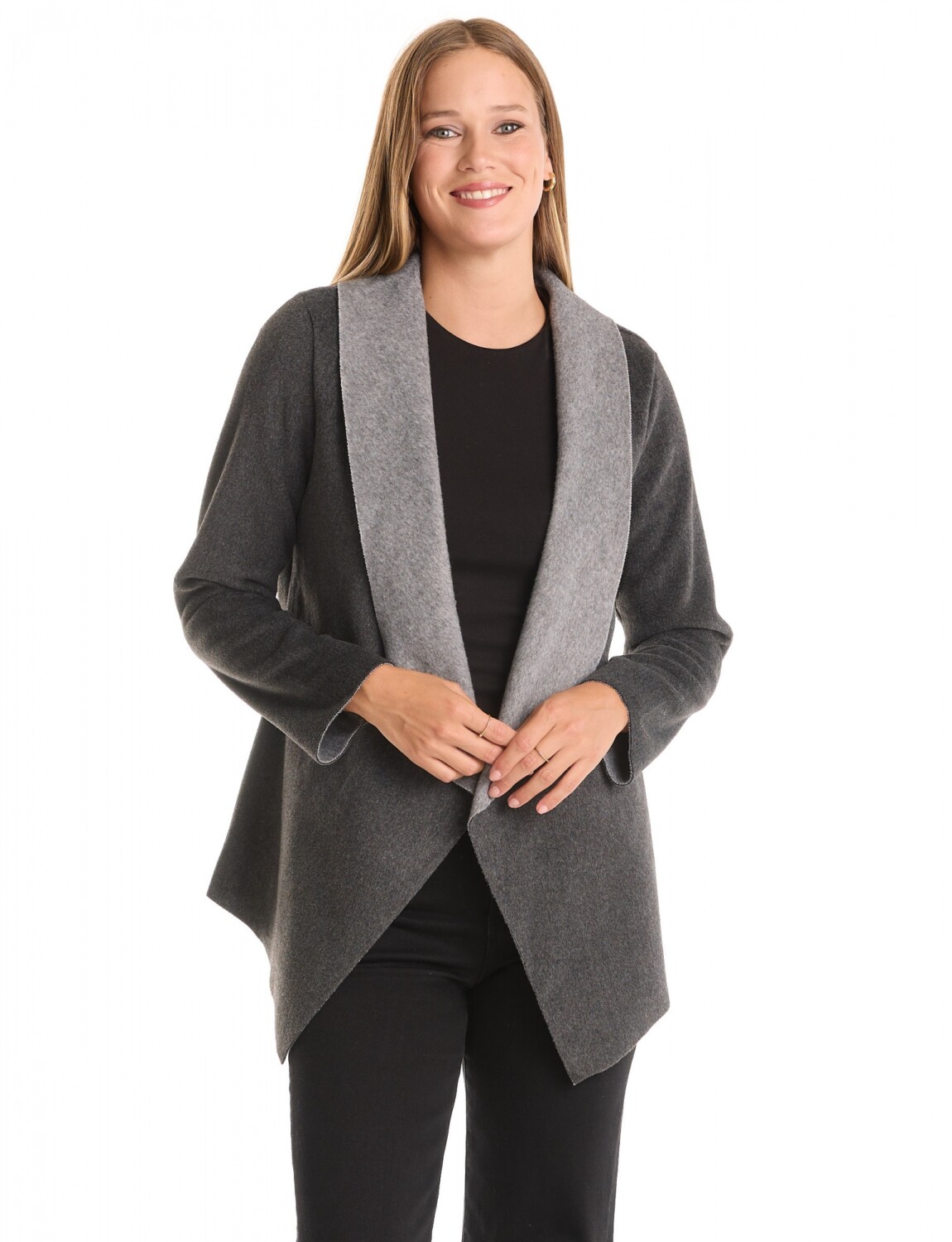 Cardigan Soft & Solapa Contraste - Gris Oscuro