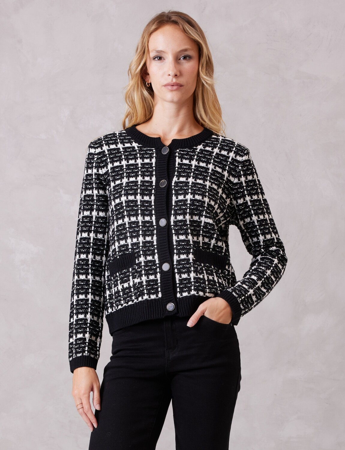 Cardigan Tejido Cuadrille - Negro/blanco