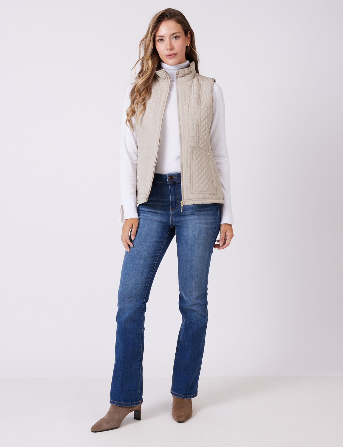 Chaleco con capitoneado clásico que asegura una distribución térmica equilibrada.