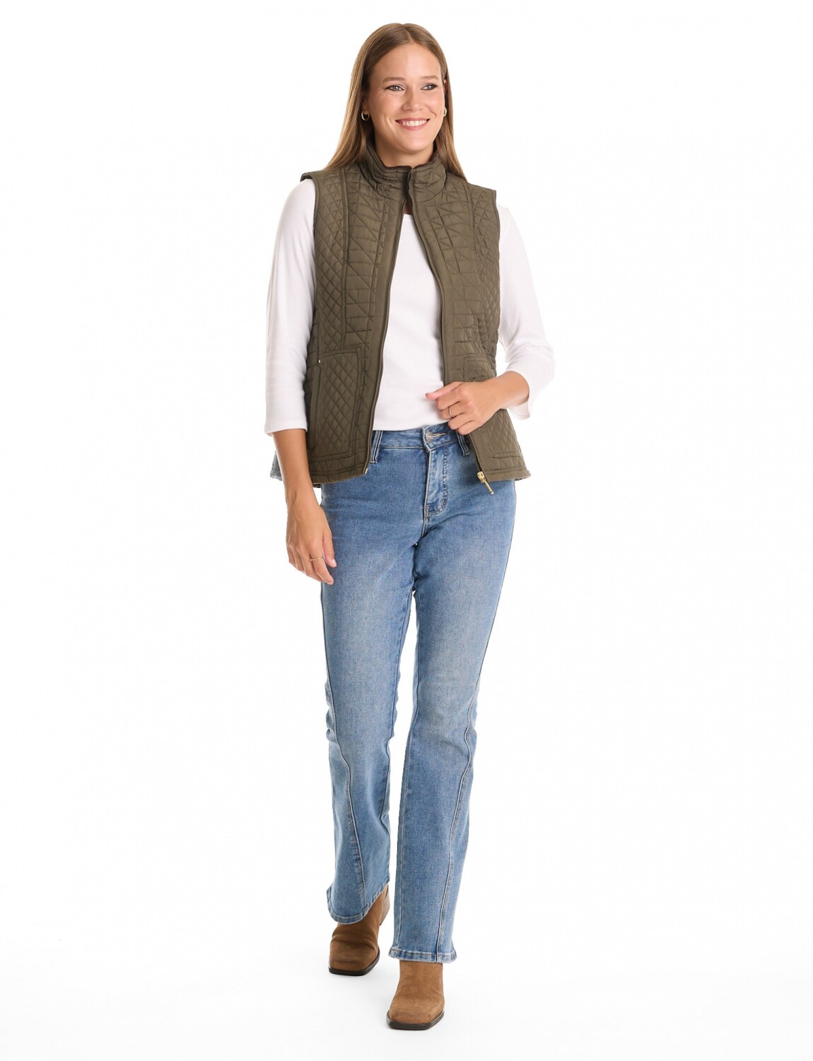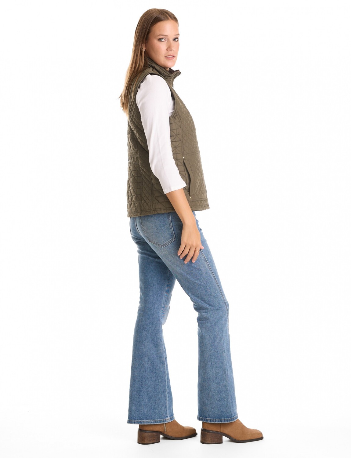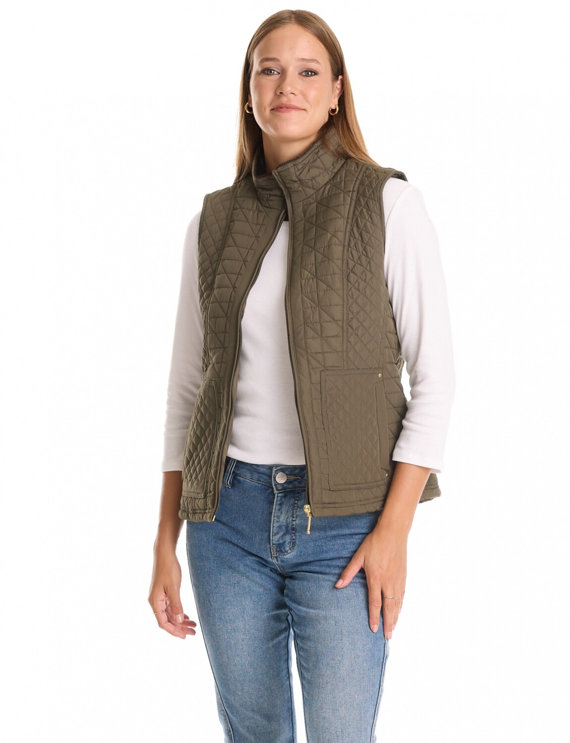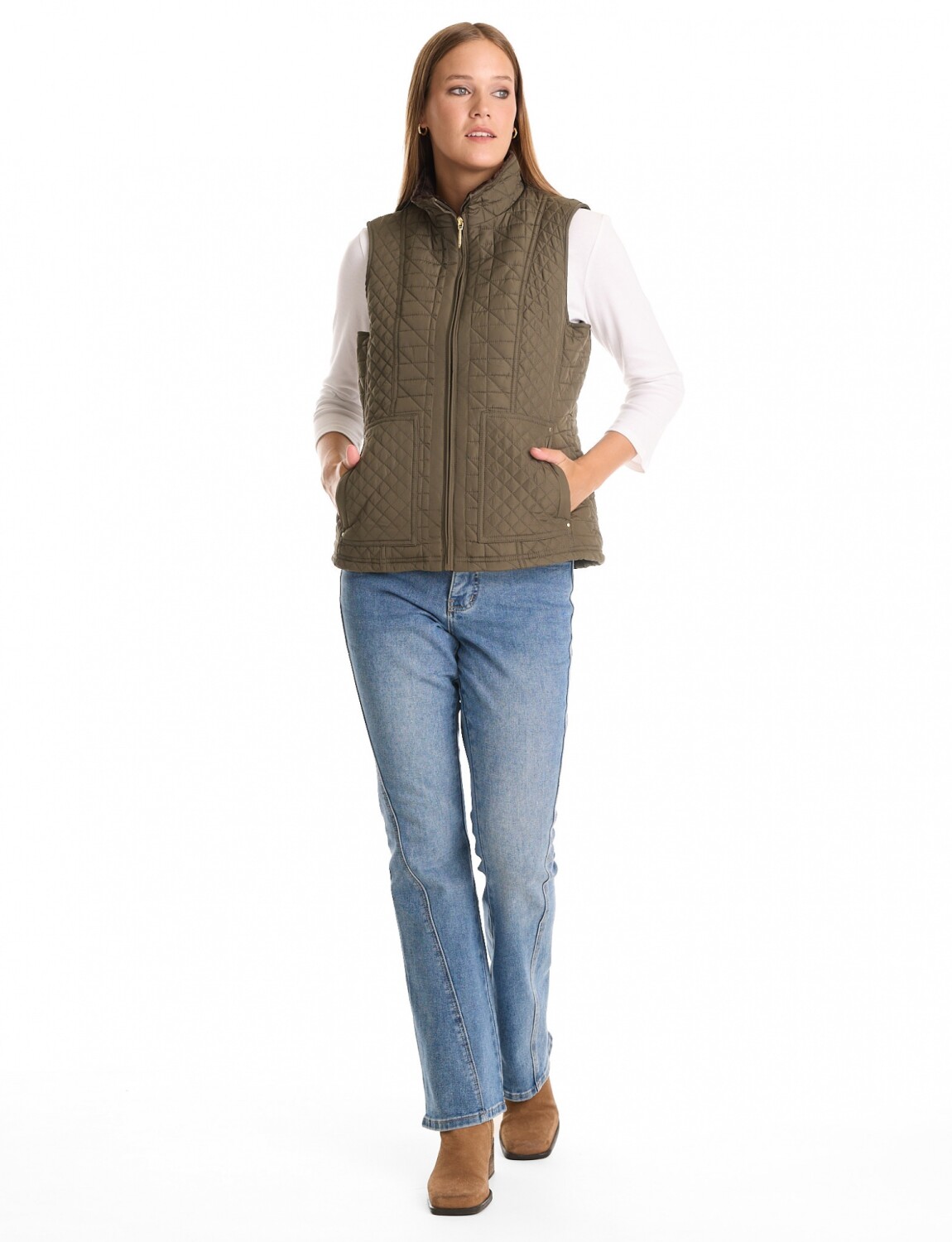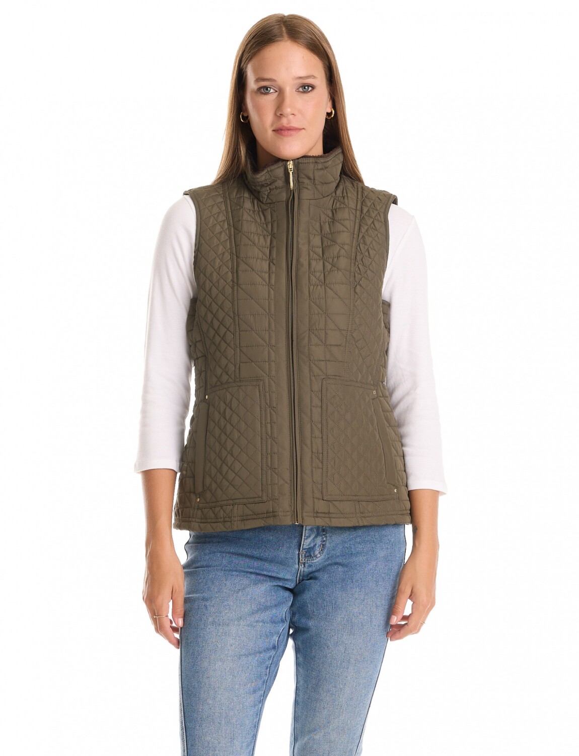 Chaleco Capitoneado Con Forro En Símil Piel - Oliva