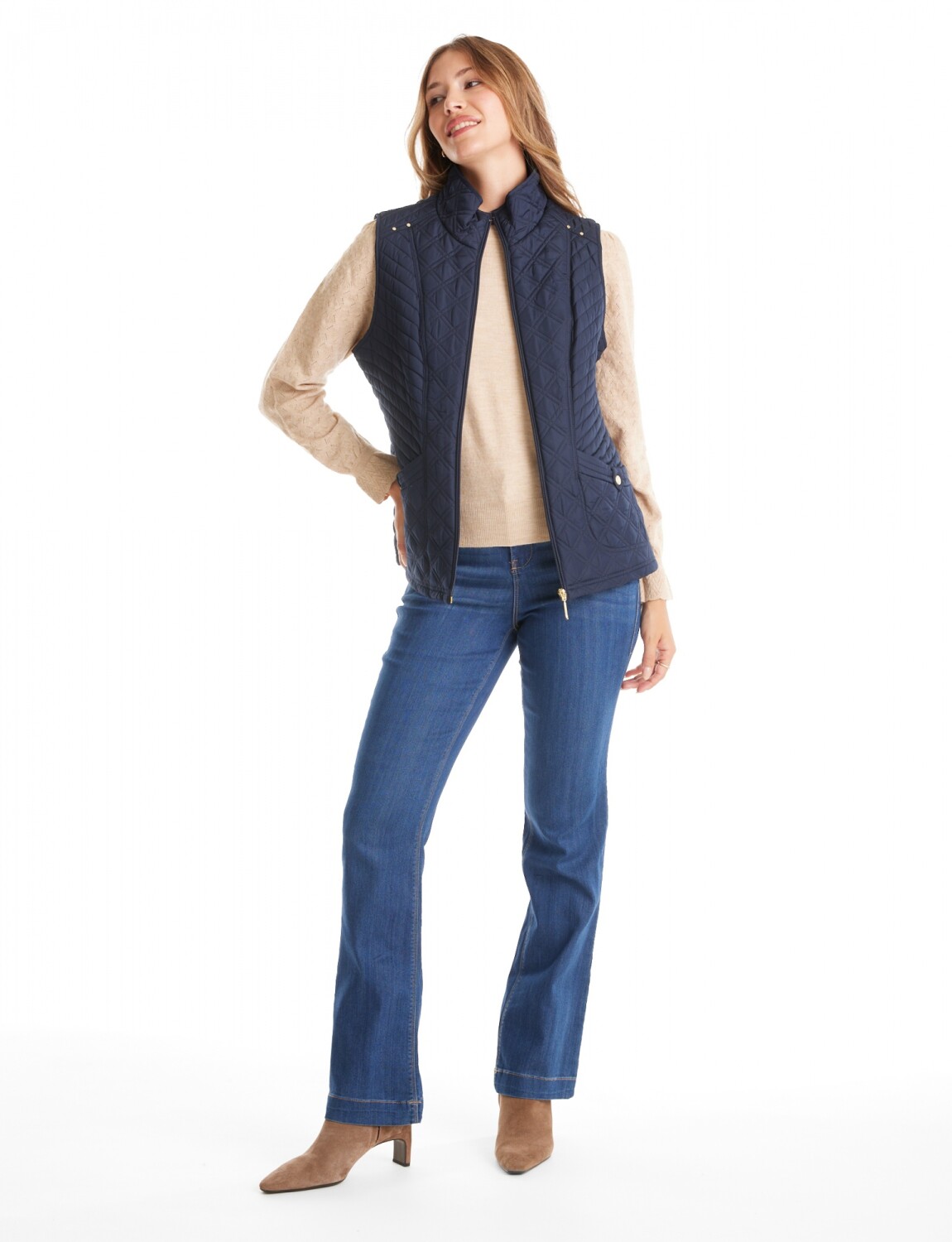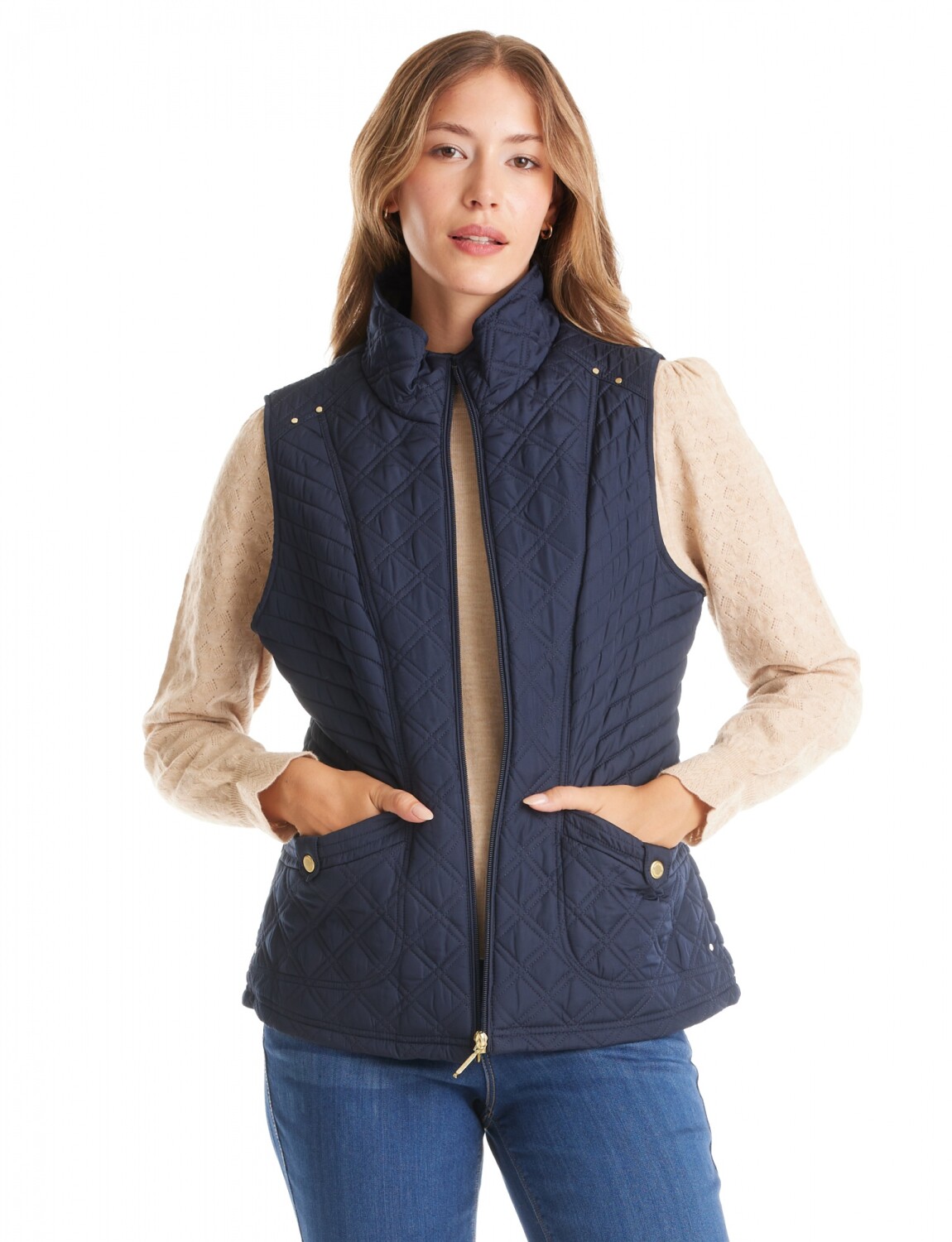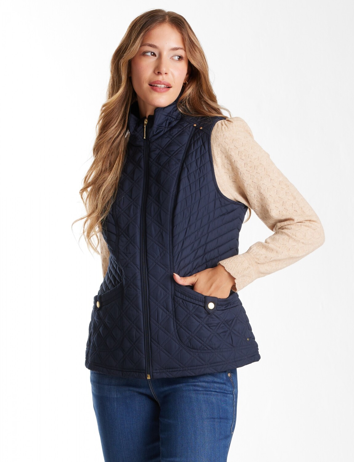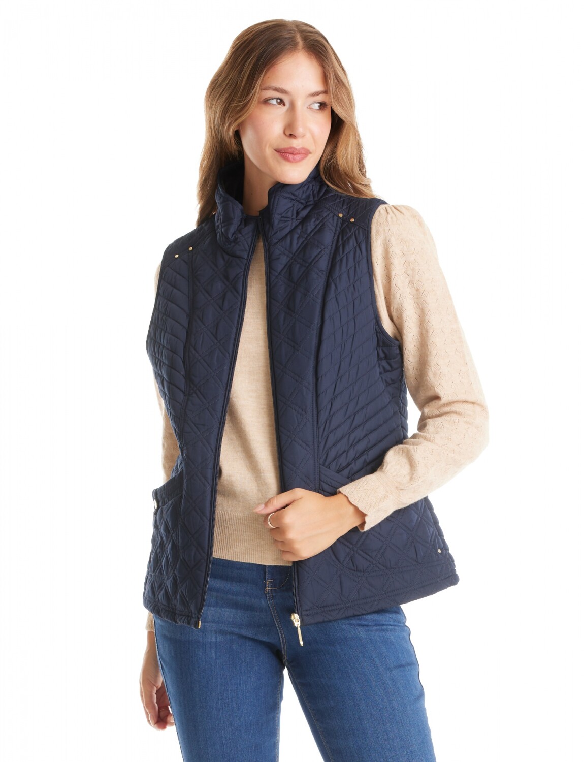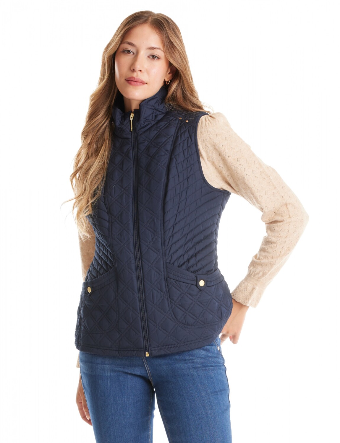 Chaleco con capitoneado clásico que asegura una distribución térmica equilibrada.
