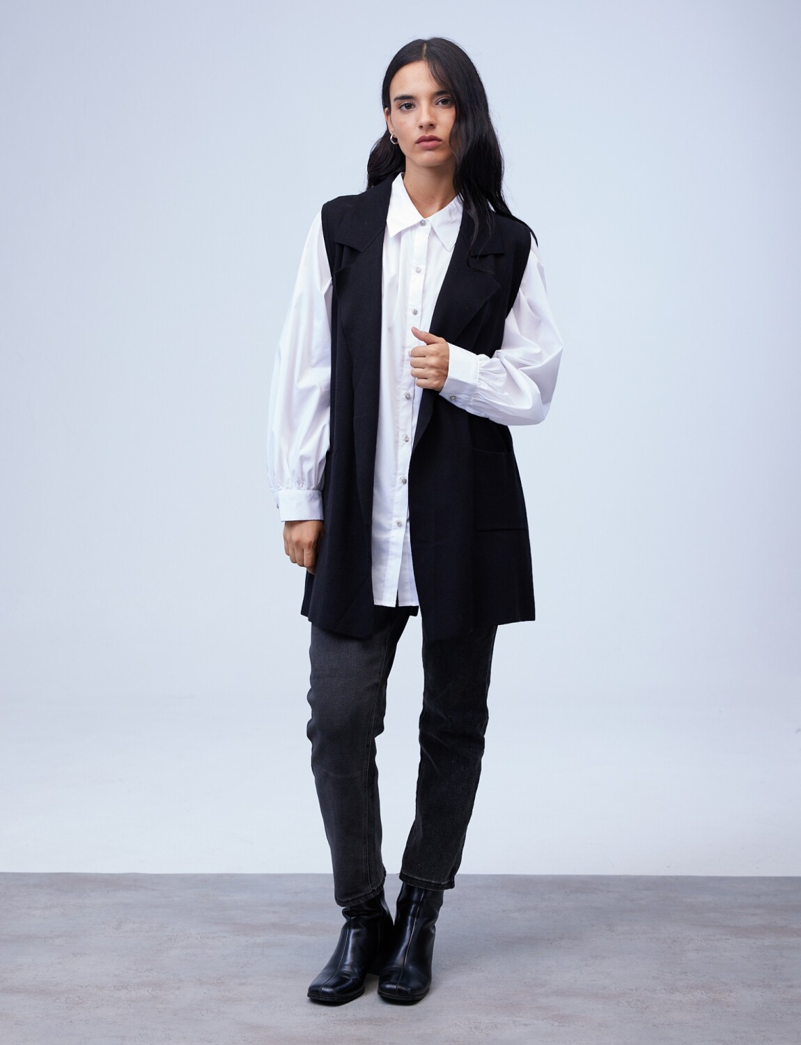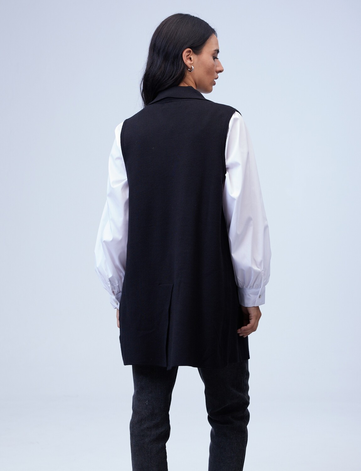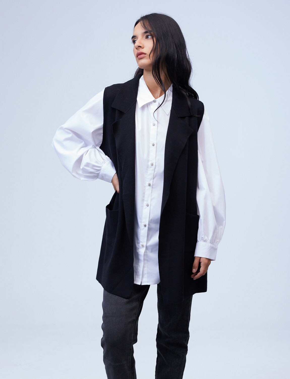 Chaleco Largo Solapa - Negro